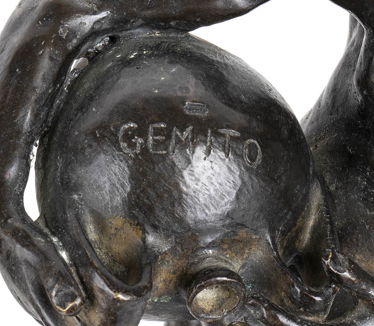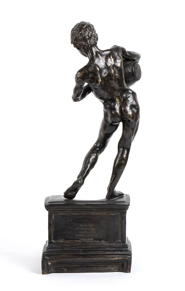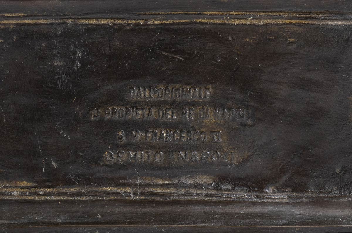 Buone condizioni, firma "Gemito" incisa sull'anfora, incisione sul retro della base "Dall' originale di proprietà del re di Napoli Francesco II Gemito Napoli"