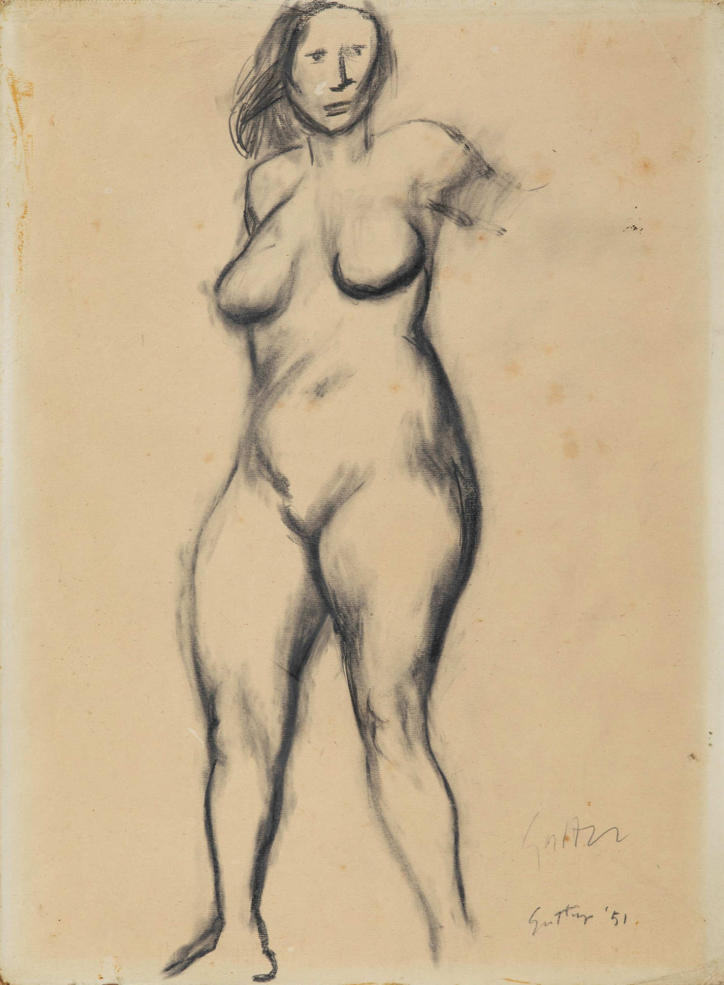 Renato Guttuso (1911-1987), Senza titolo, 1951, charcoal drawing, pencil on paper laid to cardboard, cm 45x33,5 signed and dated twice lower right The work is registrered at the Archivio Renato Guttuso, Roma, 2/12/18, with the n. 1815412486