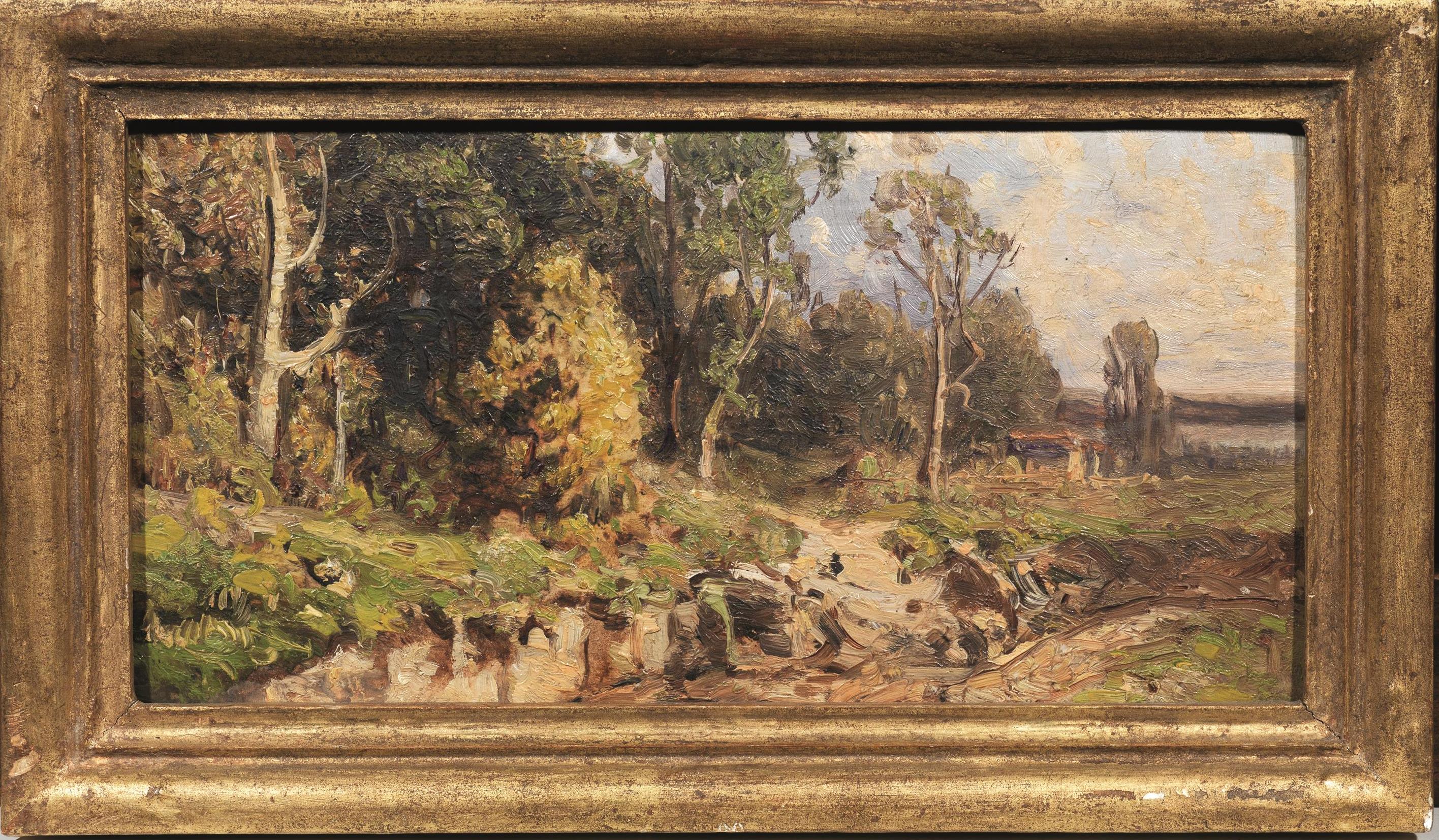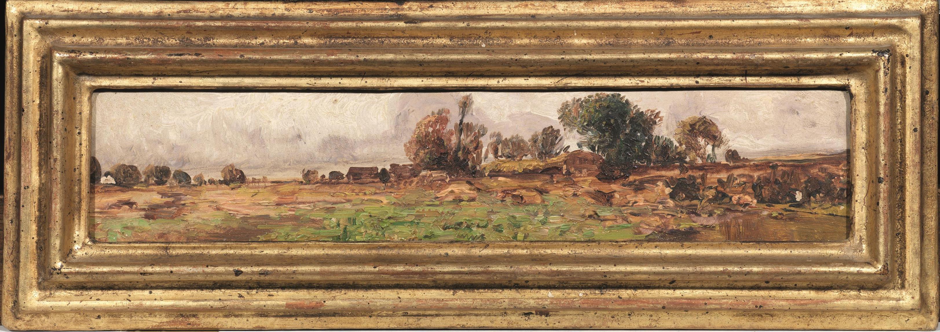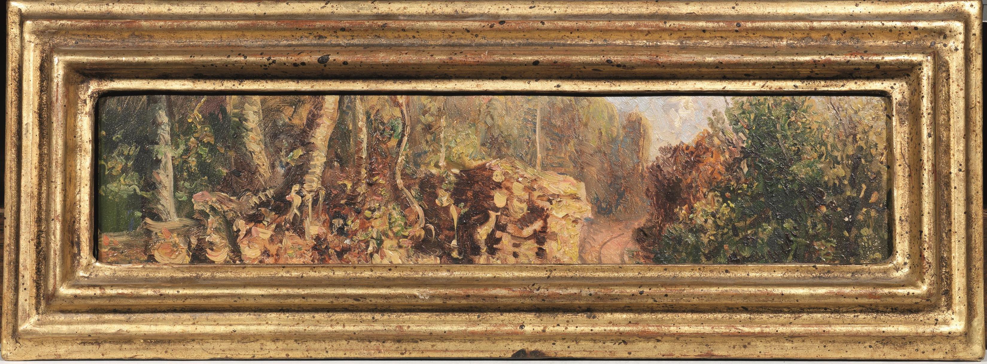 Carlo Mancini(Milano 1829 - 1910)PAESAGGIolio su tavoletta, cm 6,5x25...