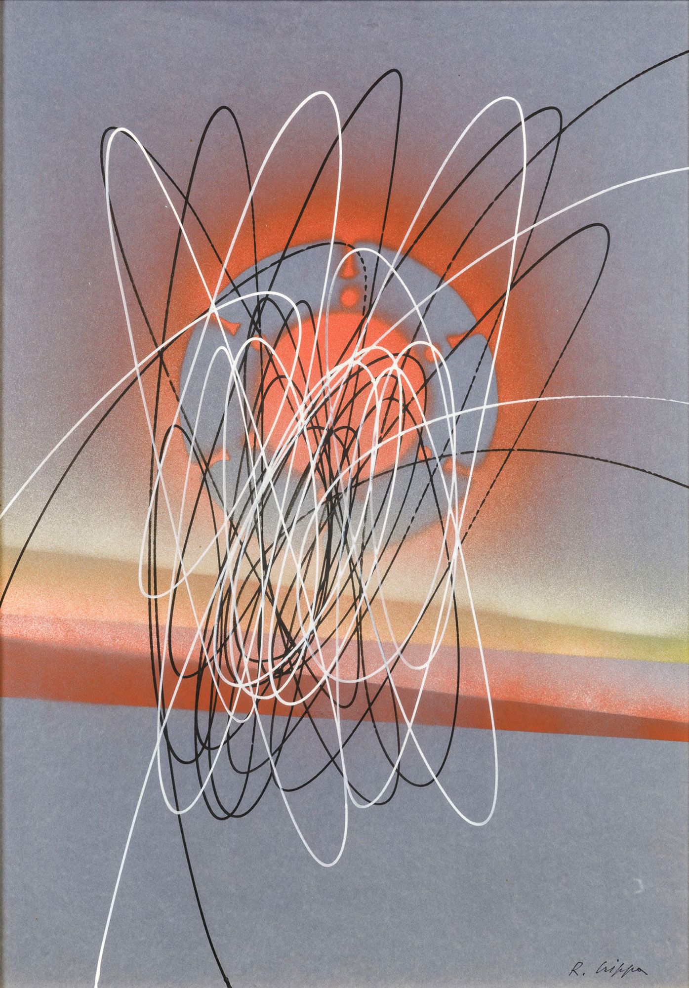 Roberto Crippa (1921-1972), Spirale, anni 65-70, olio su cartoncino intelato, cm 50x70 firmato in basso a destra Autentica su fotografia a cura di Roberto Crippa, con il n. ADN. 4/6/III/03