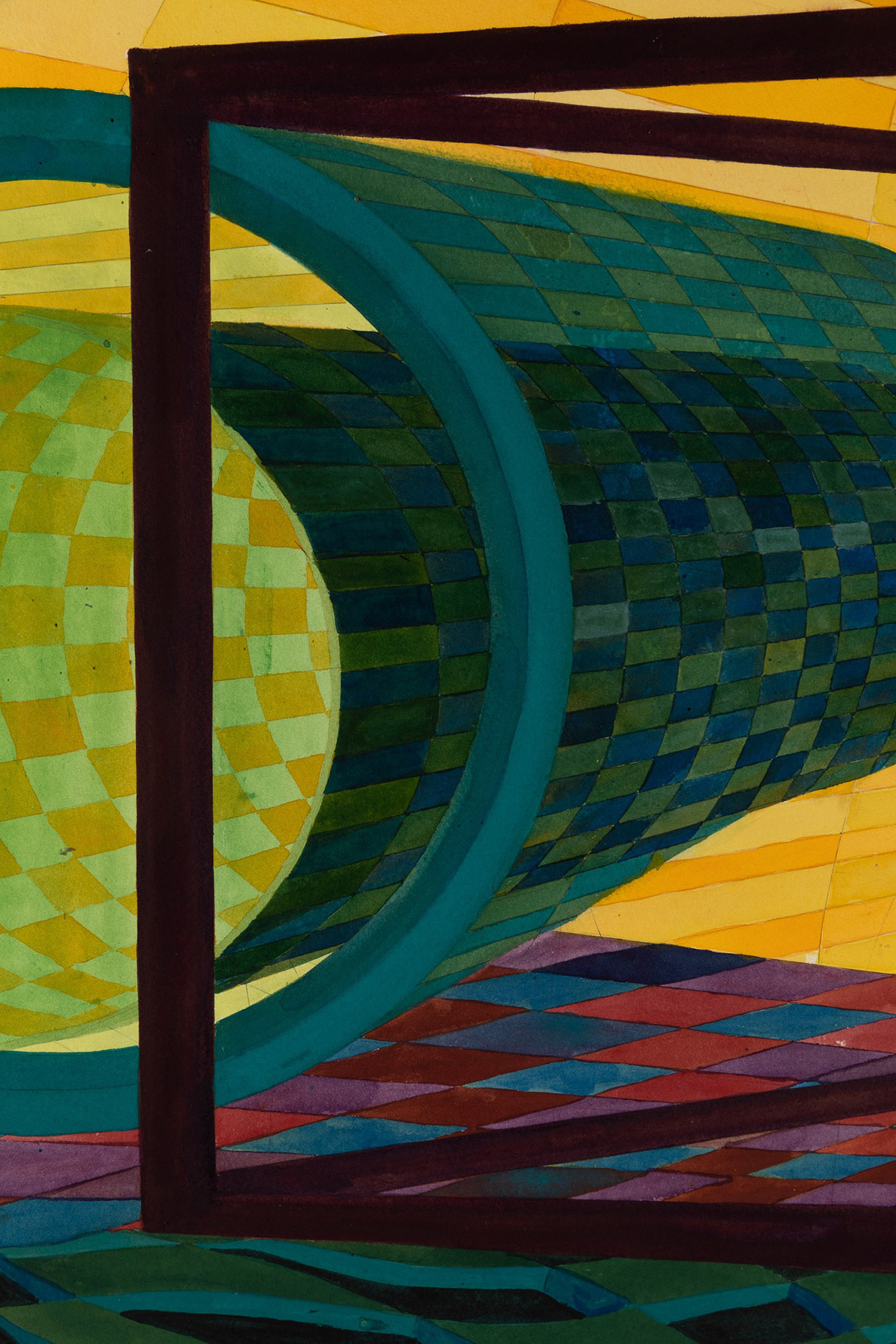 Al Held (1928-2005), Senza titolo, olio su carta applicata su tavola, cm 75x124 dedicato al retro. Provenienza: Collezione privata, Roma