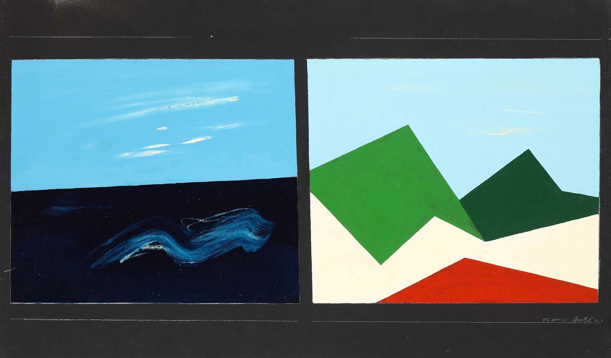 Franco Angeli (1935-1988), Canto popolare delle Ande "Dagli Appennini alle Ande", 1975, mixed media on canvas, cm 60x100 signed lower right signed, dated and titled on the back This work is registered at Franco Angeli archive, Rome, 11/05/2012, with the n. P-110512/125