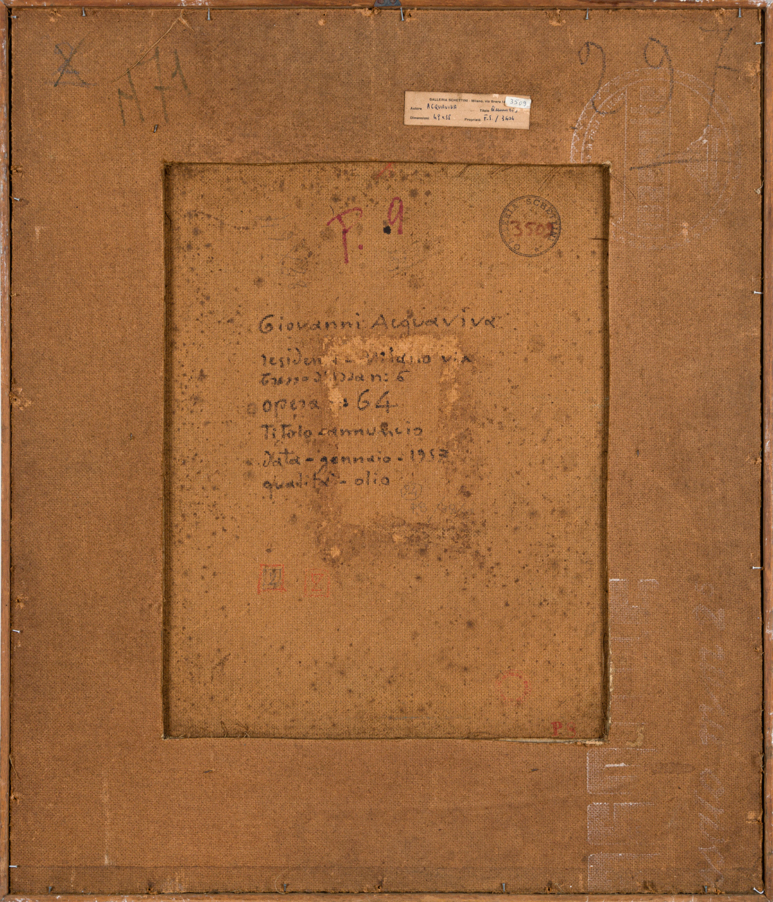 Etichetta e timbri della Galleria Schettini (MI) con relativo numero di inventario al retro