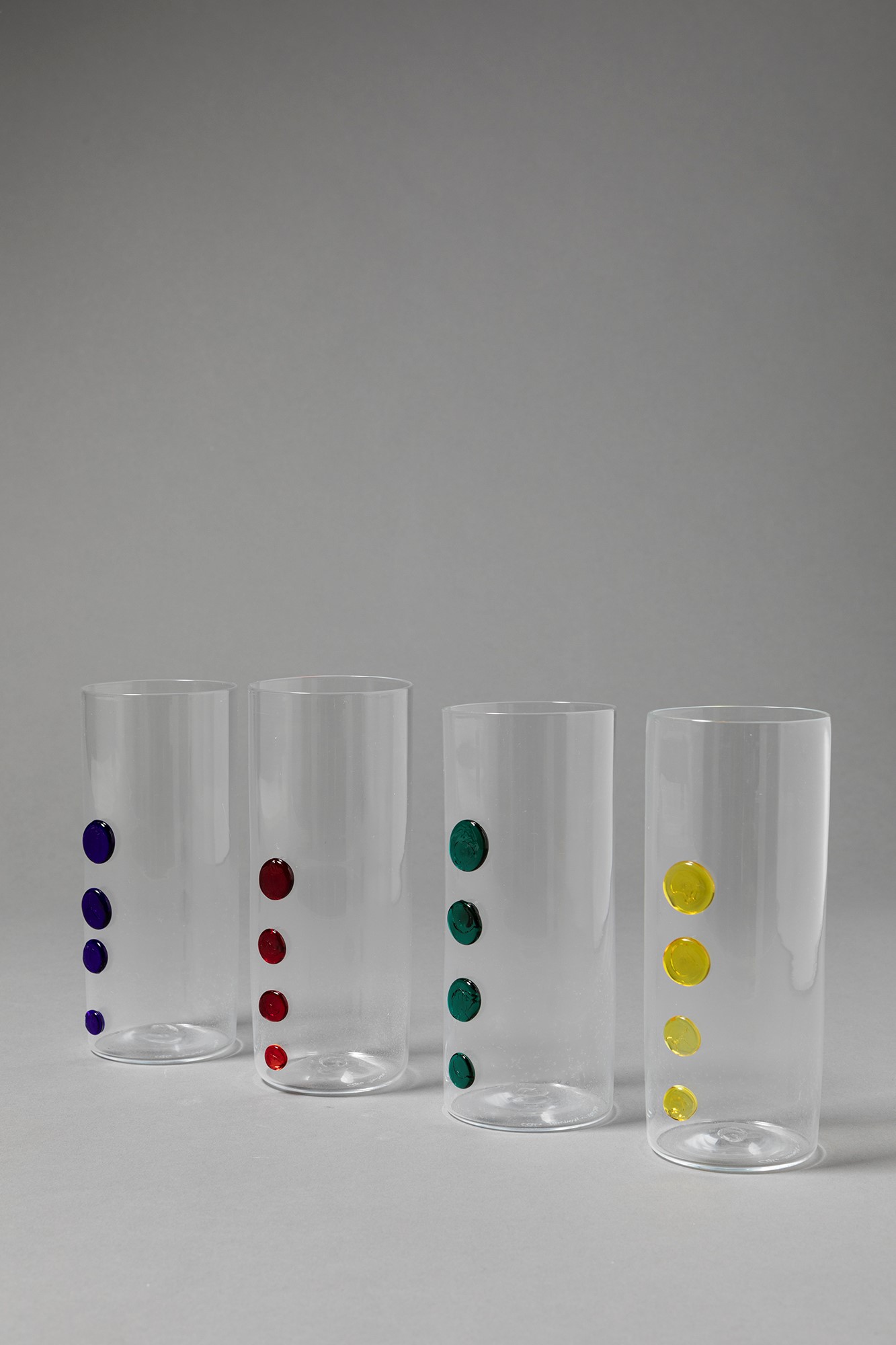 Cleto Munari - Servizio composto da 8 bicchieri in vetro di Murano con decorazioni di colori vari.