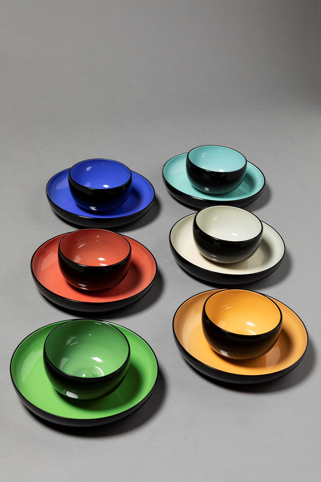 Carlo Moretti - Servizio composto da 12 pezzi (ciotole e piattini) in colori differenti, tutti con scatola originale.