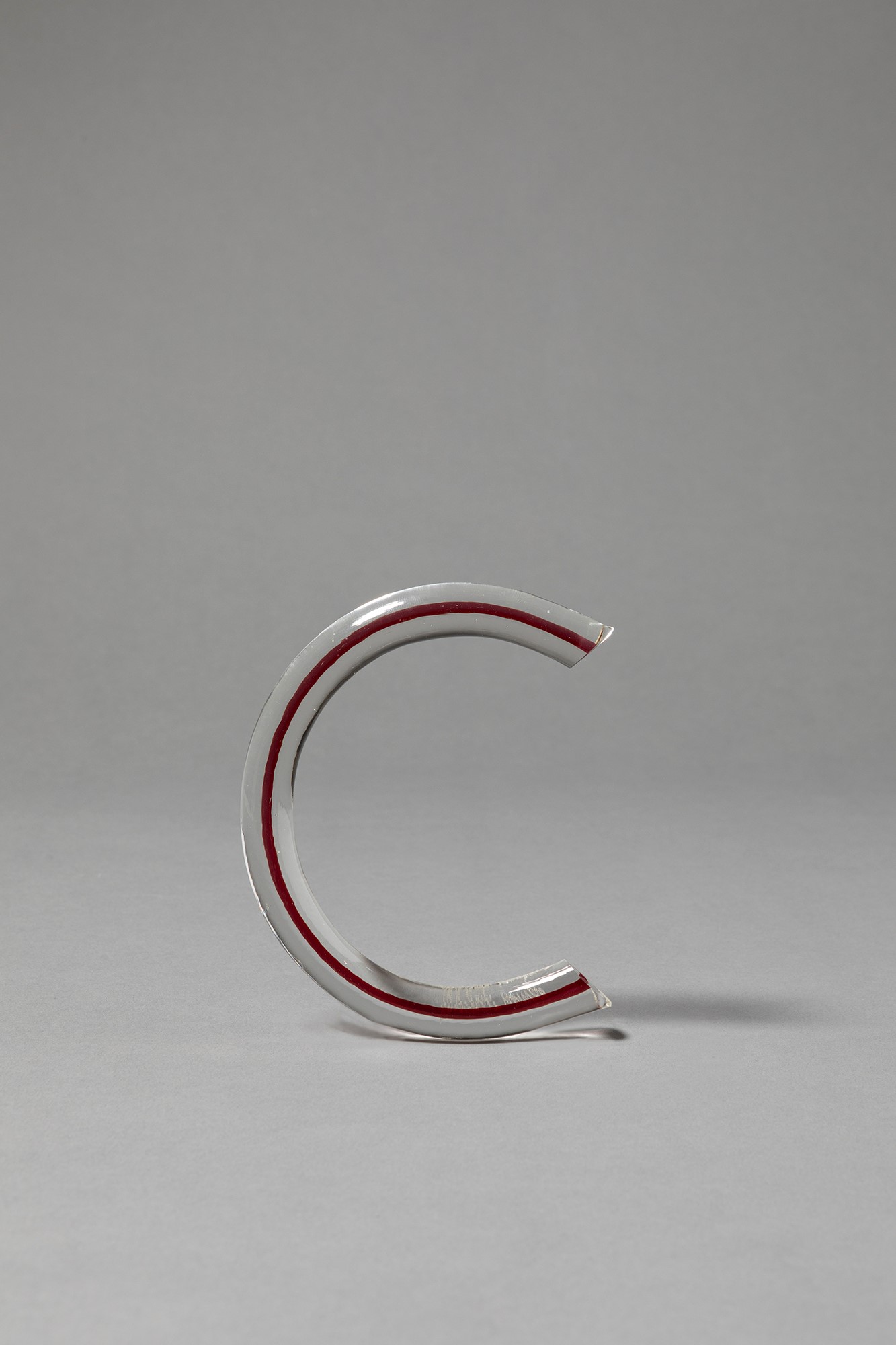 Massimo Vignelli - Lettera C della serie Neon. Canna in vetro soffiato trasparente curvata a caldo e impreziosita da un filo in vetro rosso sommerso. Serie 411.10.