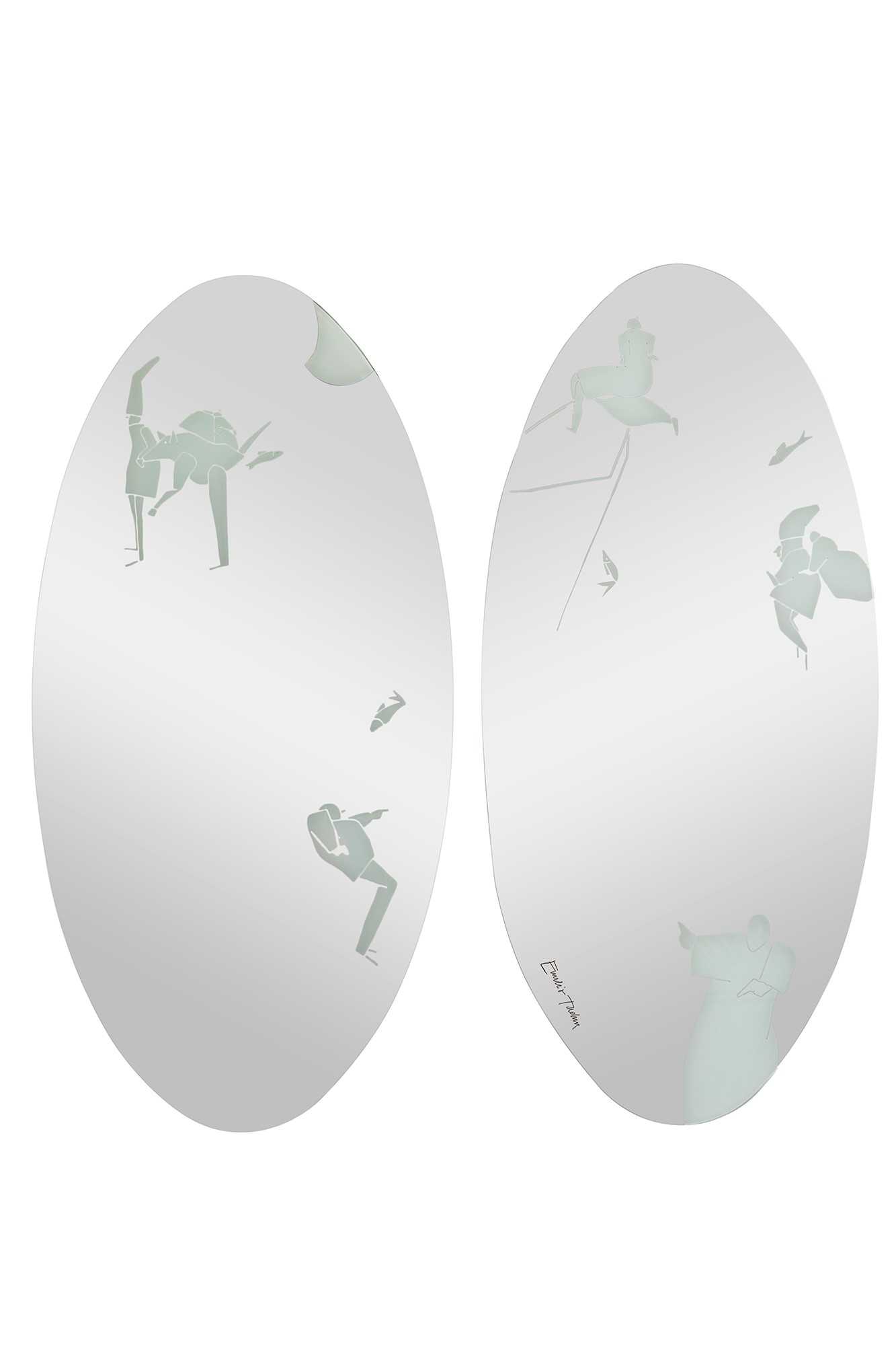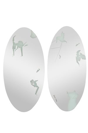Emilio Tadini - Due specchi Serie Fiabe in vetro specchiato e serigrafato.