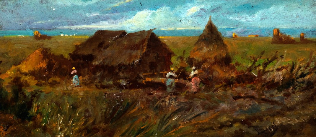 Temistocle Lamesi (Roma 1870-1951) - Capanne nella Campagna romana