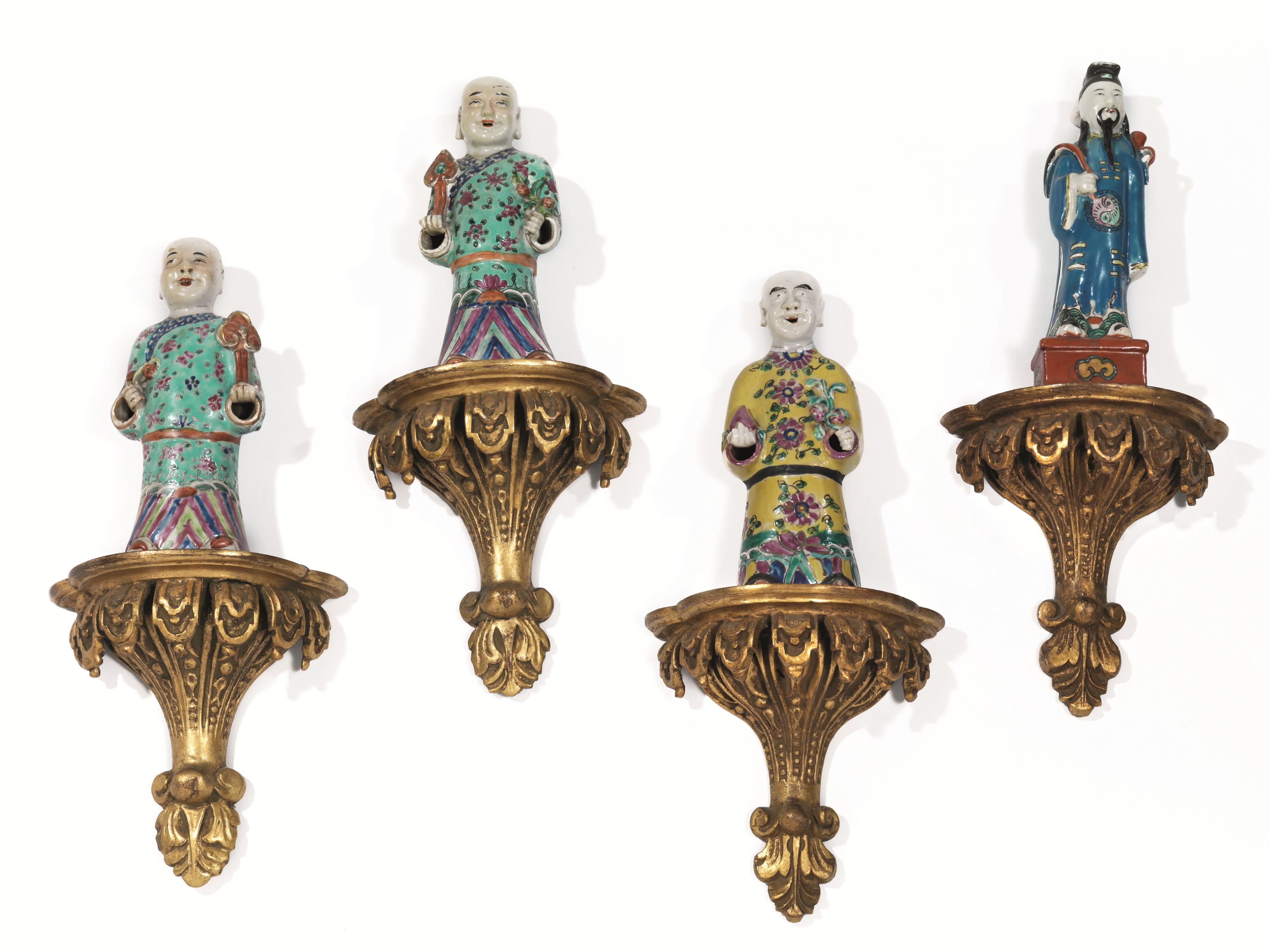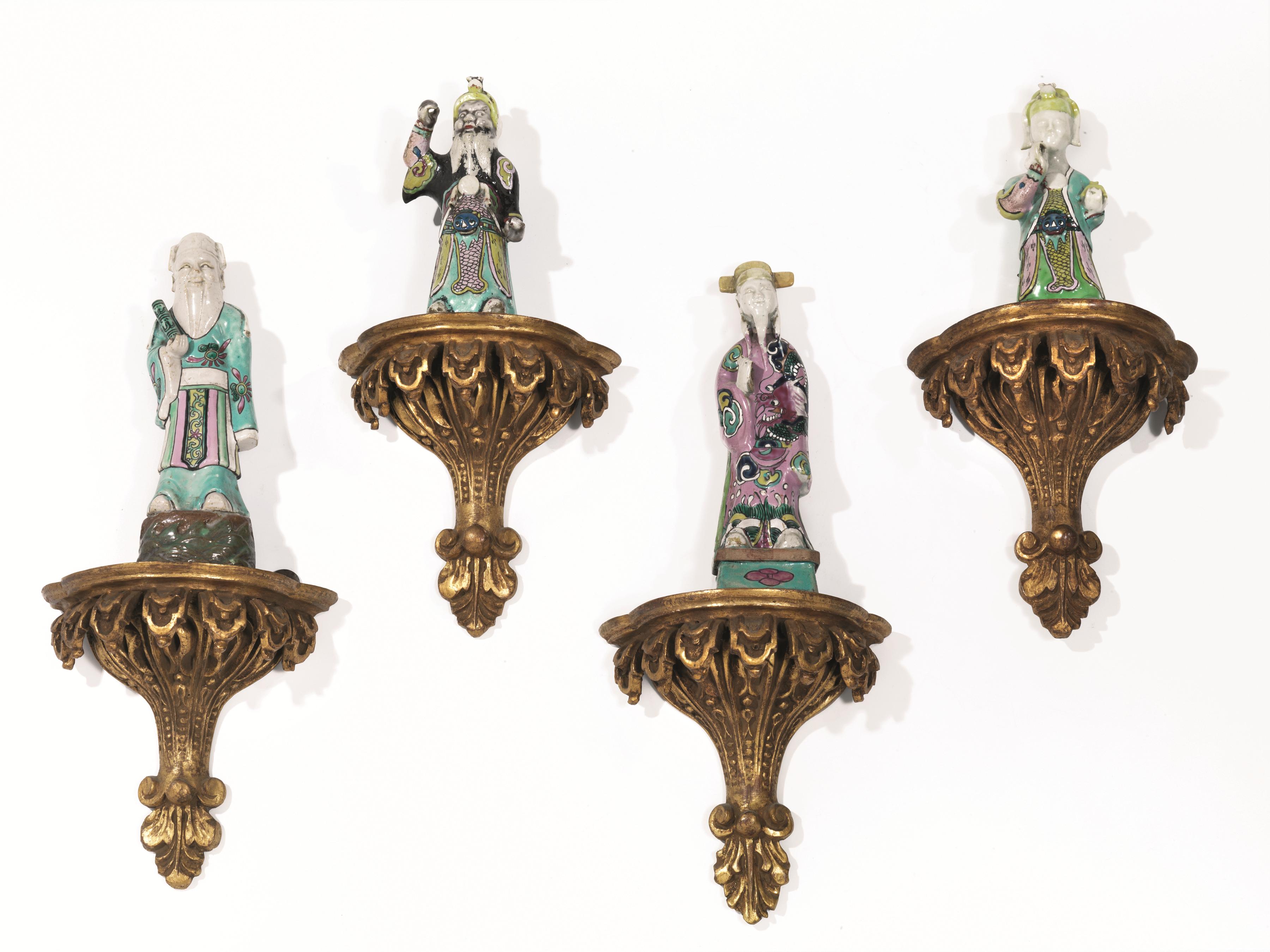 Otto sculture, Cina, sec XIX, in porcellana policroma raffiguranti saggi e
