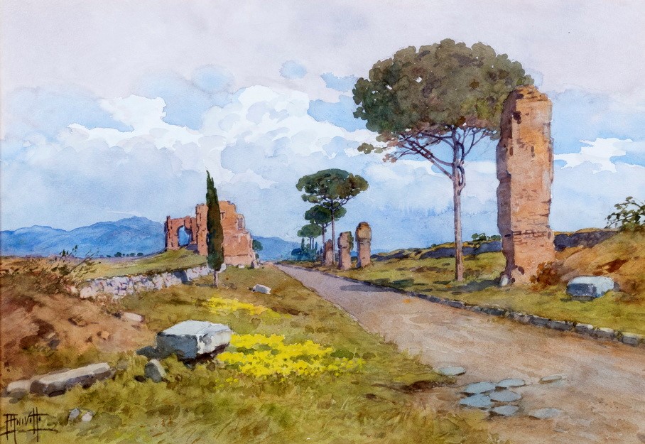 Filippo Anivitti (Roma 1876-1955) - Roma, rovine lungo la Via Appia
