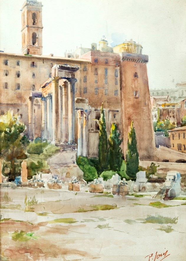 Pio Joris (Roma 1843-1921) - Veduta del Campidoglio dal Foro Romano