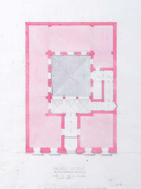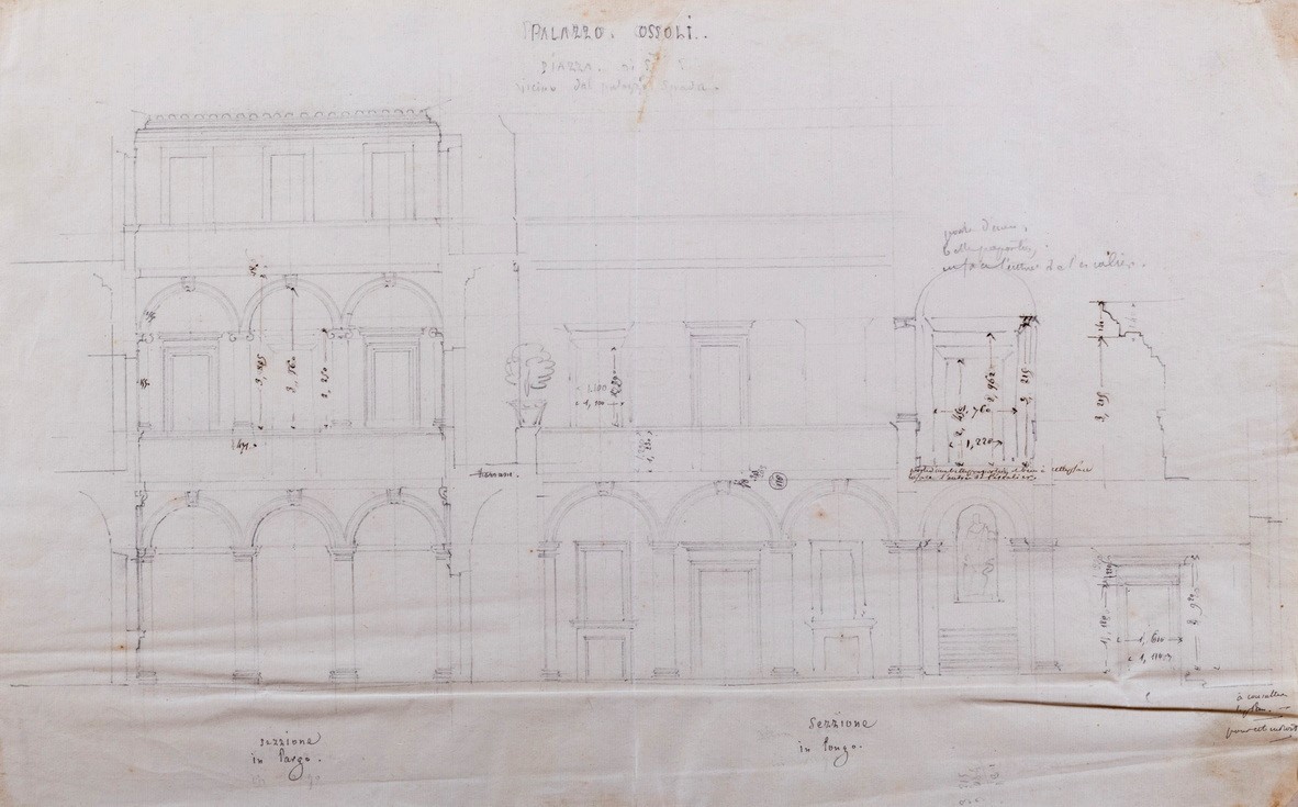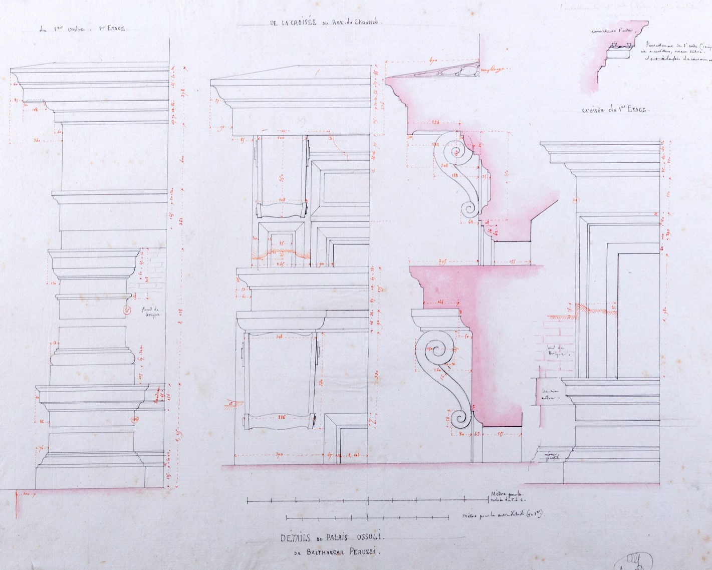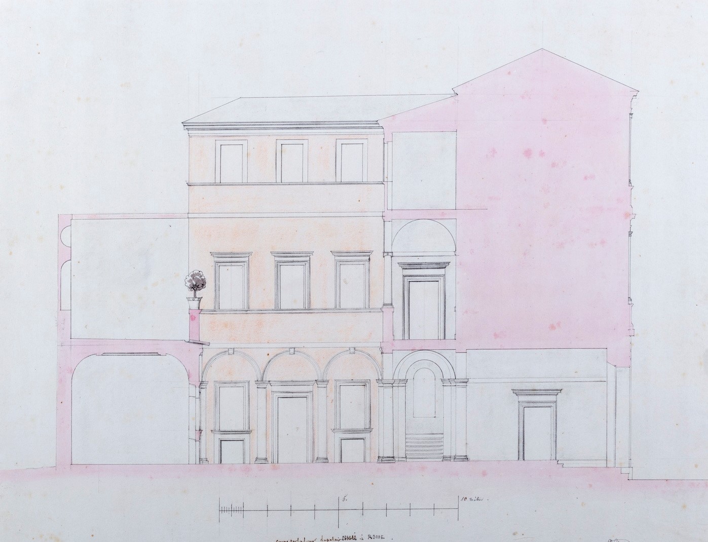 Augustin-Théophile Quantinet (Parigi 1795-1867) - Lotto di sei studi architettonici di Palazzo Ossoli, già Missini, in Piazza della Quercia
