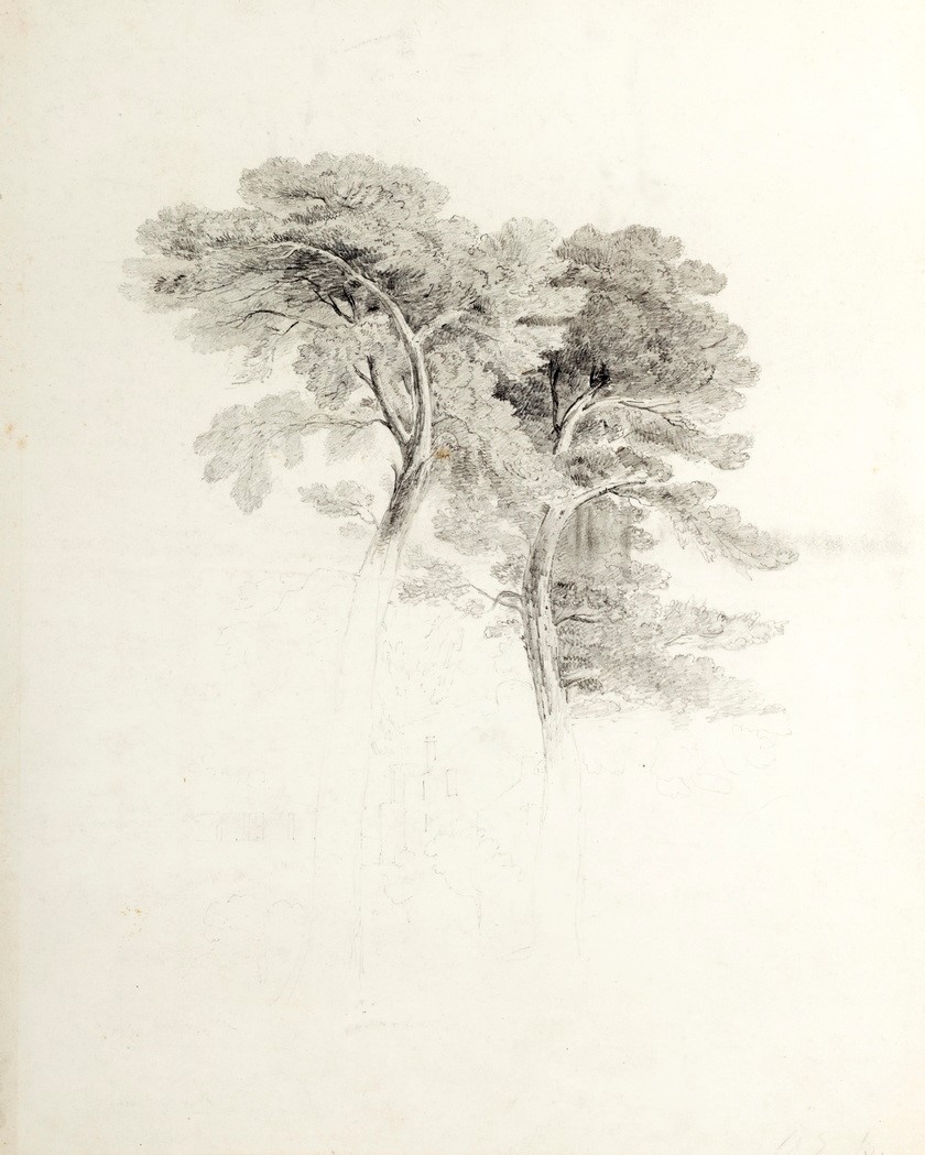 Scuola europea del XIX secolo - Studio di alberi con caseggiato