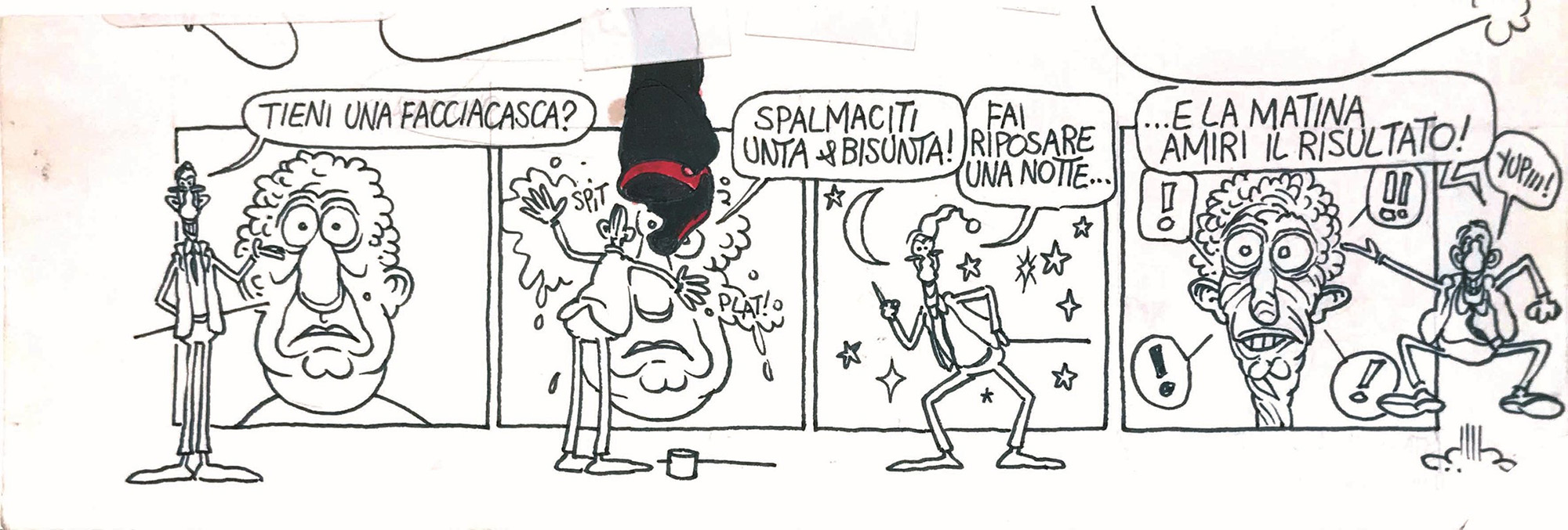 Andrea Pazienza (1956- 1988), Agnelli, Strip for Primo Carnera, mixed technique on cardboard. 8x25 cm. White corner missing, otherwise in good condition.