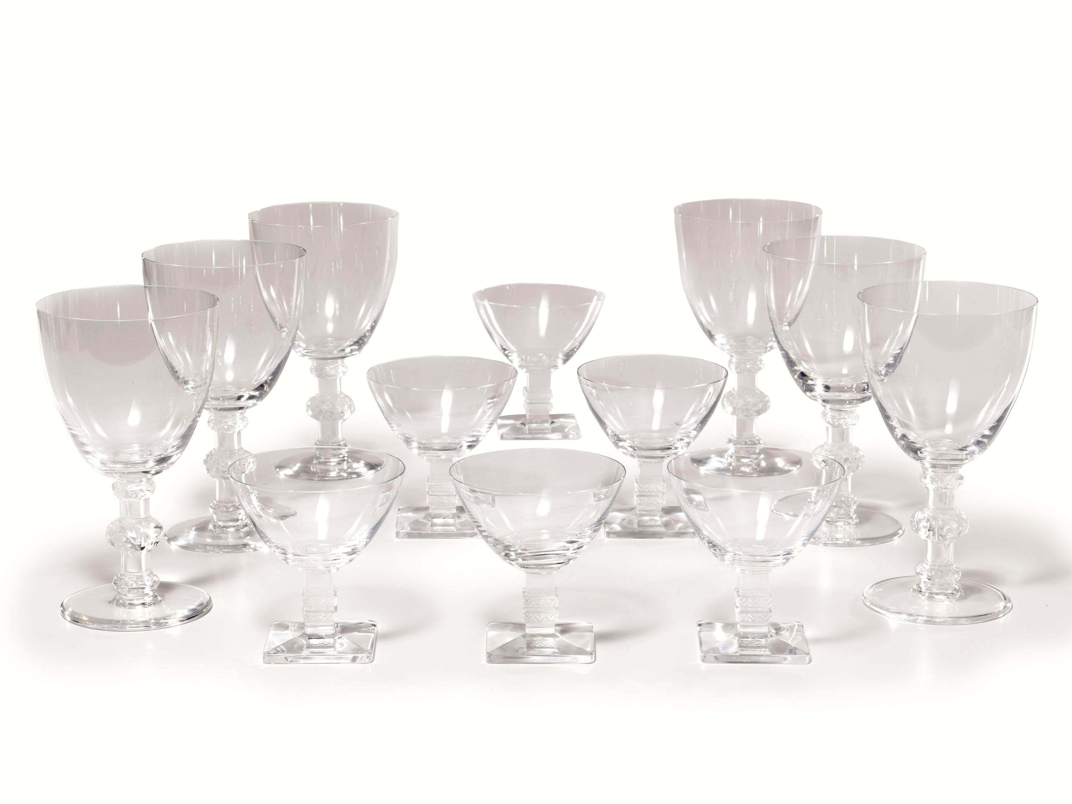 Quarantuno bicchieri, manifattura Lalique, a calice di tre modelli diversi (41)