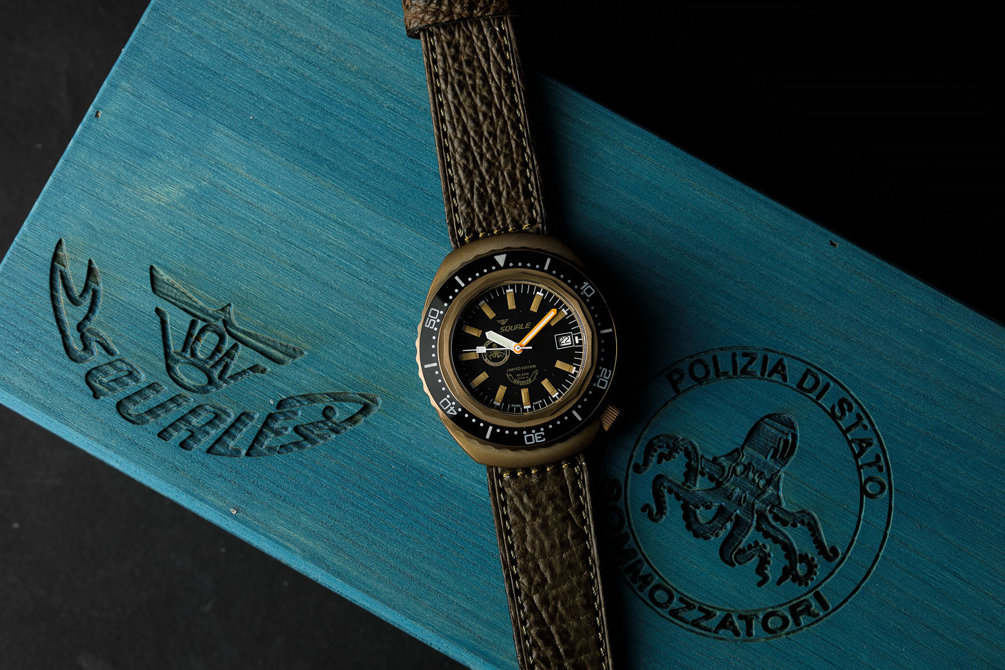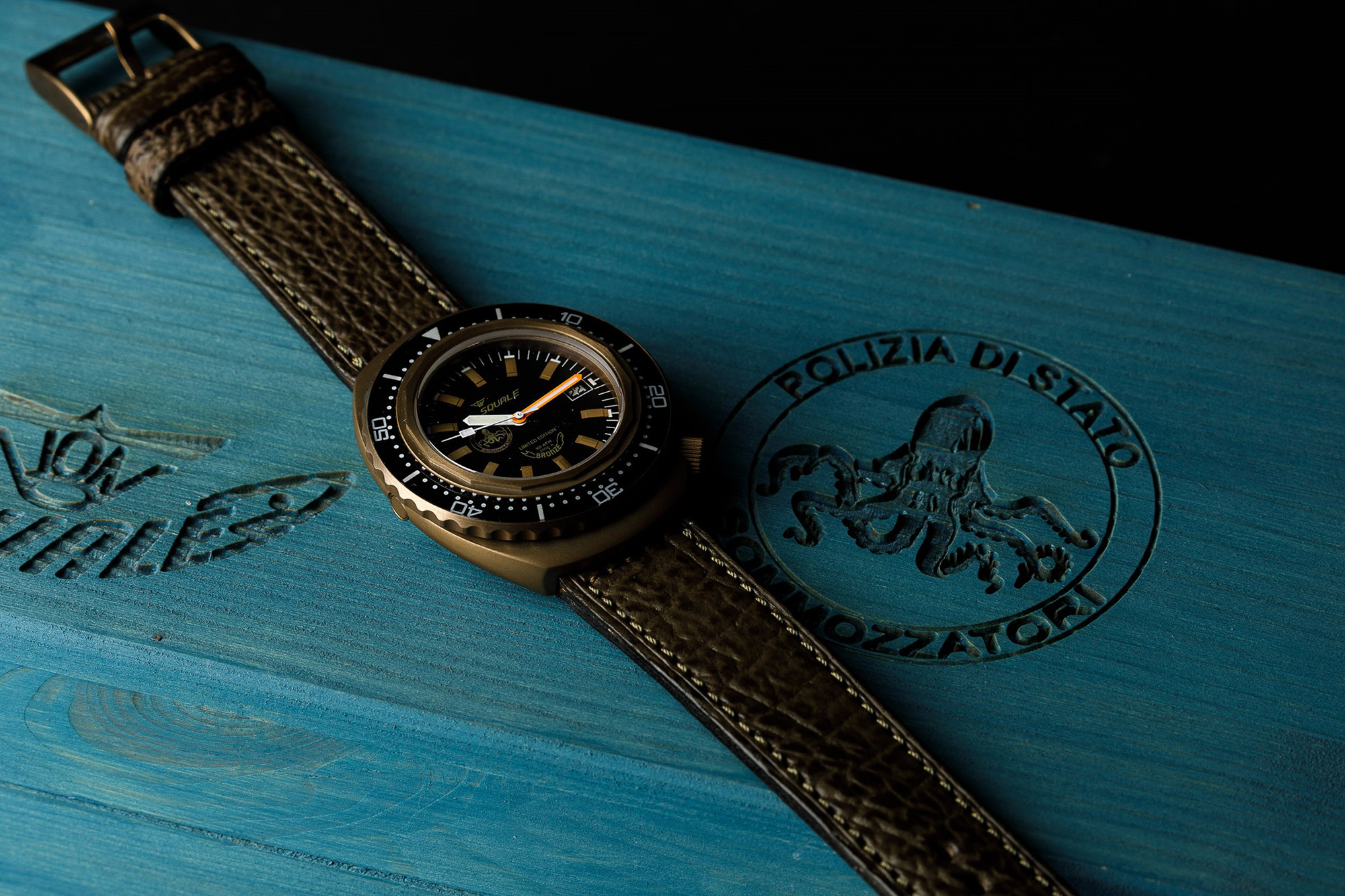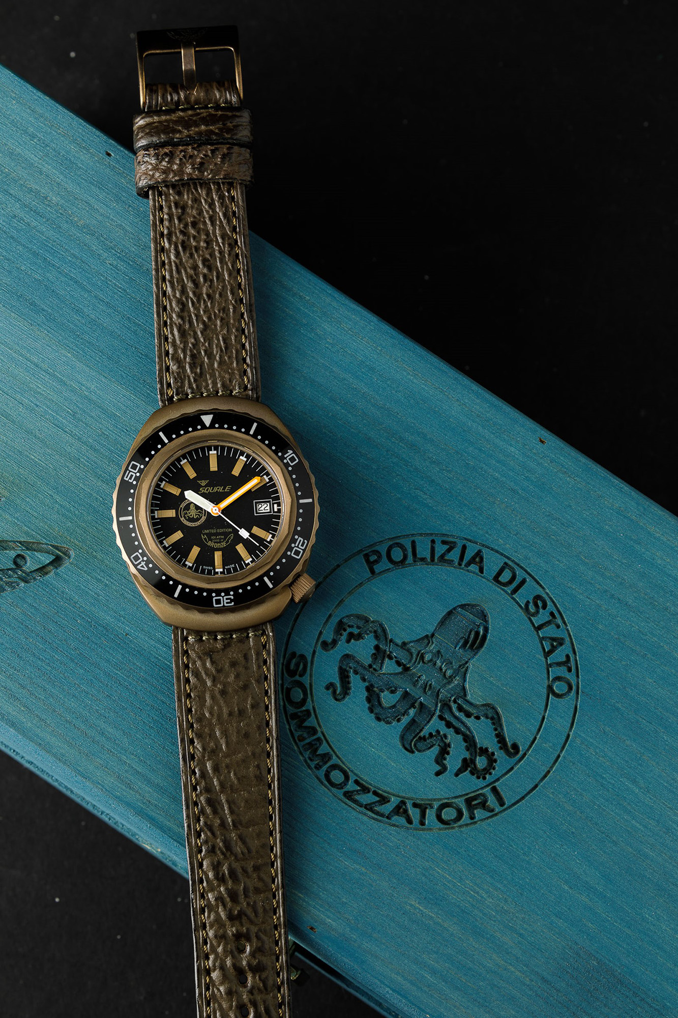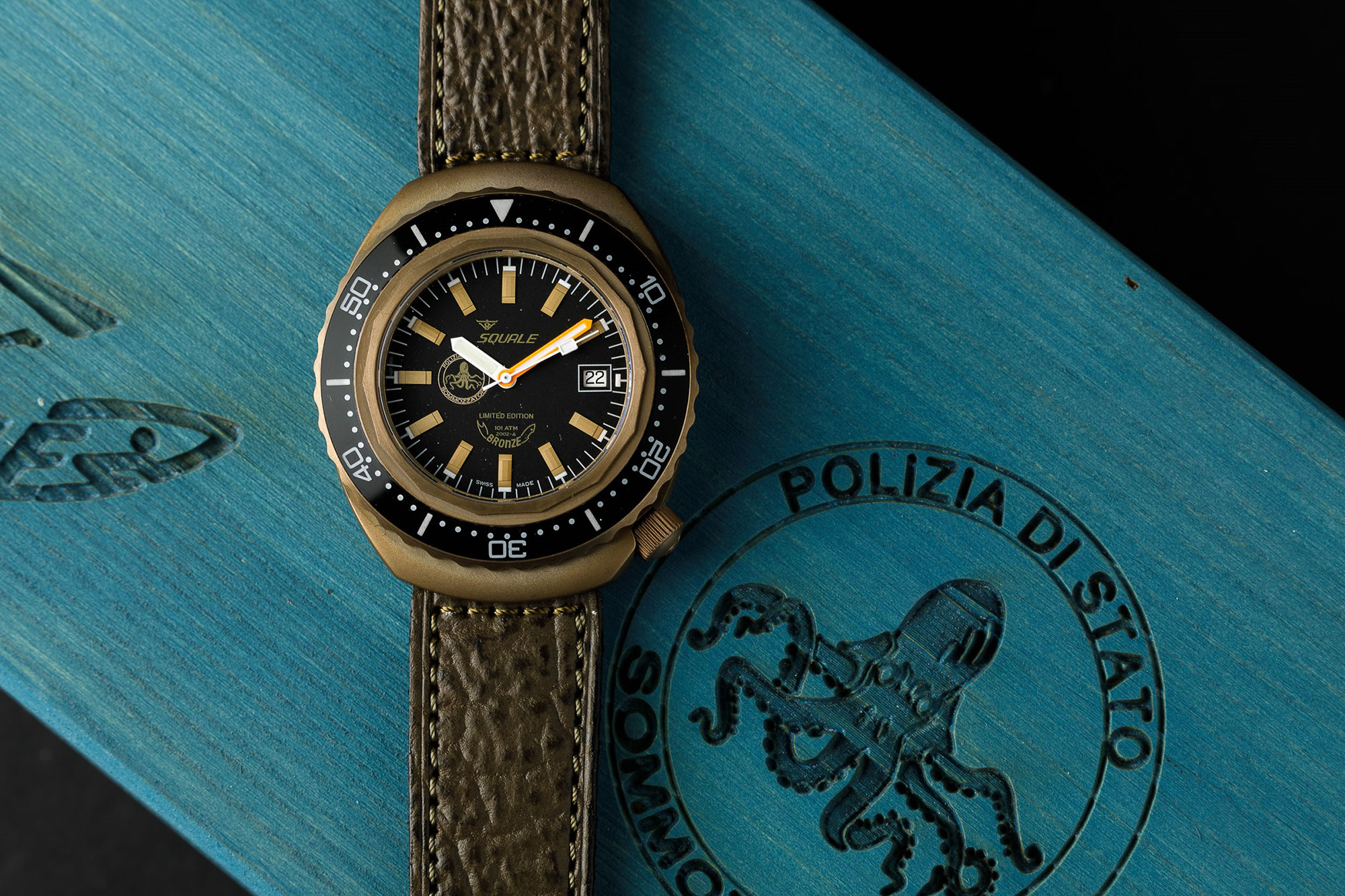 SQUALE - Polizia di Stato Sommozzatori 60° anniversario, edizione limitata 151 pz, brevetto SMZ N192, scatola garanzia e doppio quadrante NOS