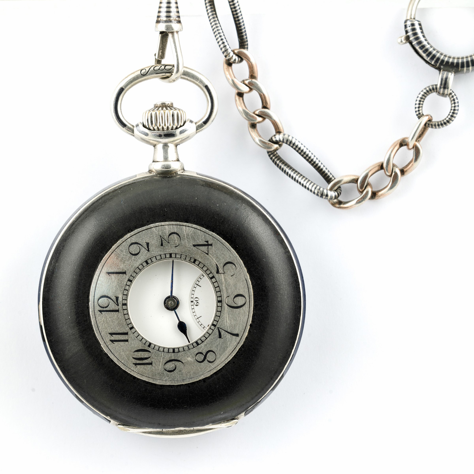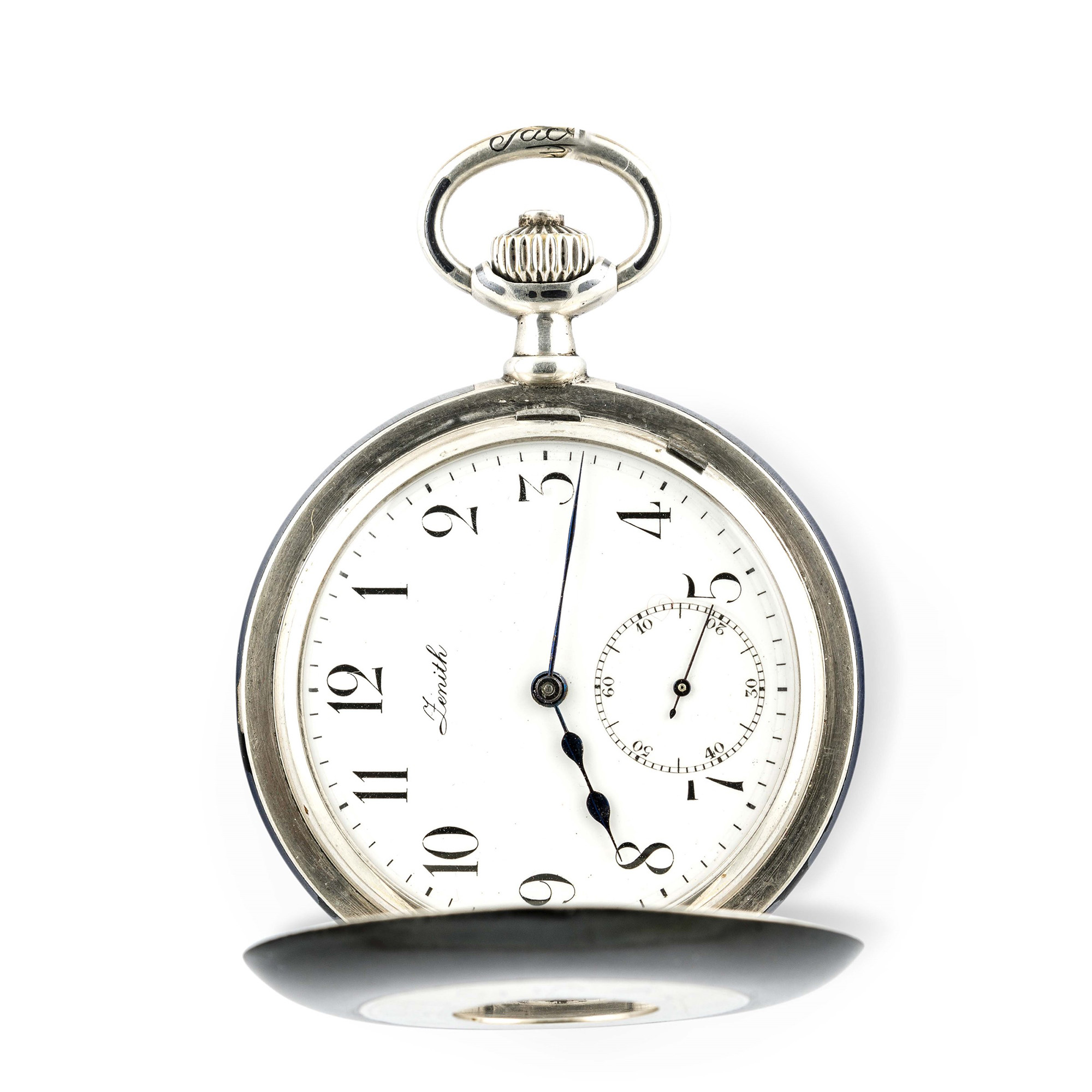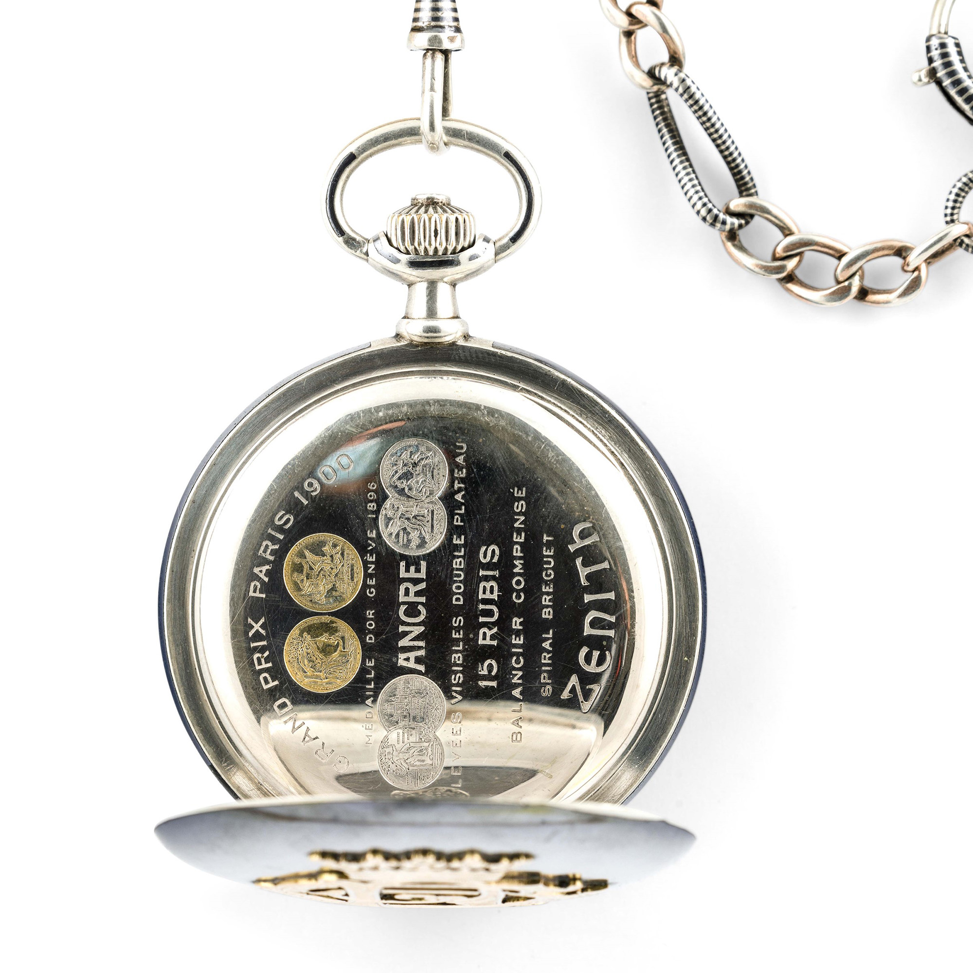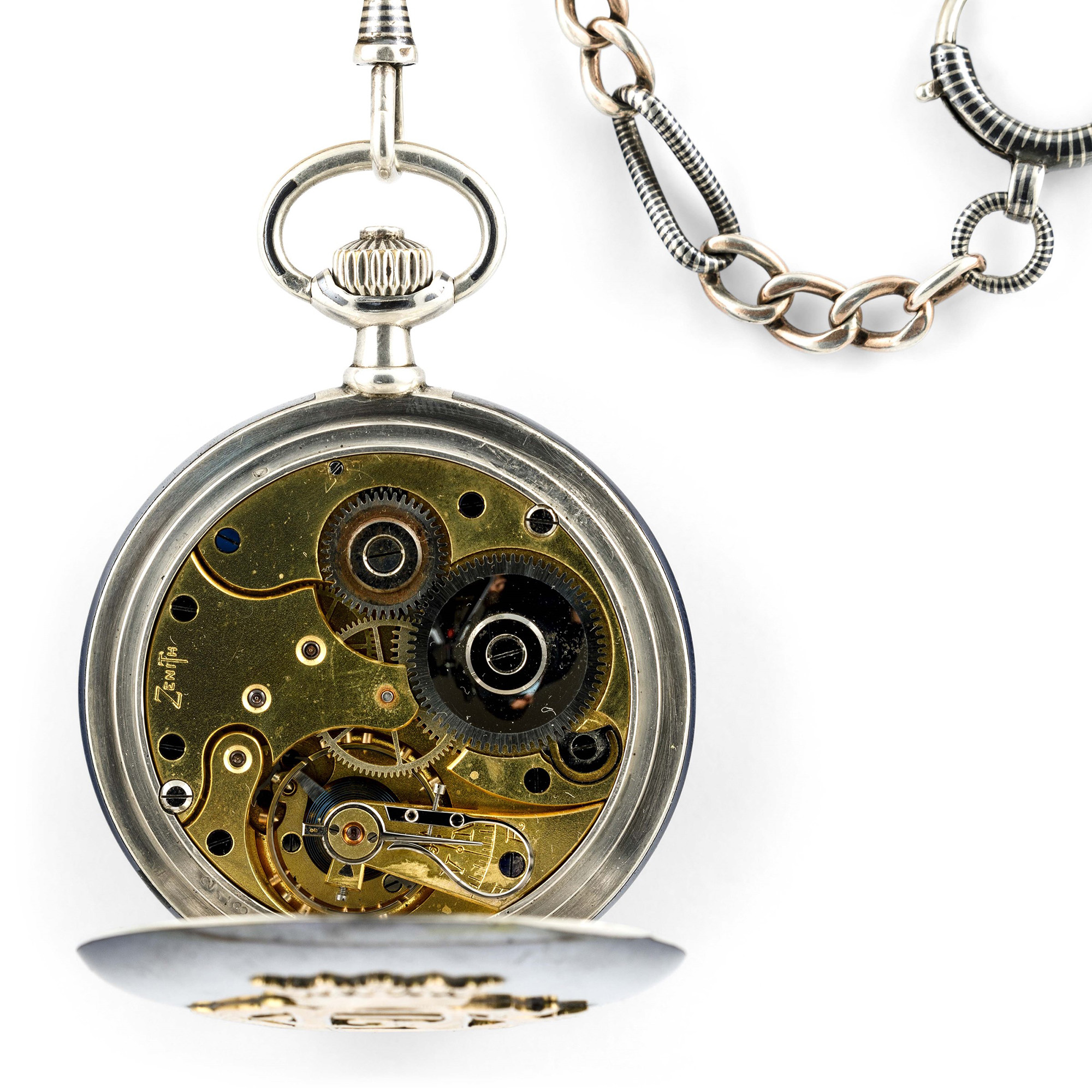 ZENITH - Orologio da tasca "Occhio di bue" d'argento con emblema marchionale in oro e firma de Sade con catena