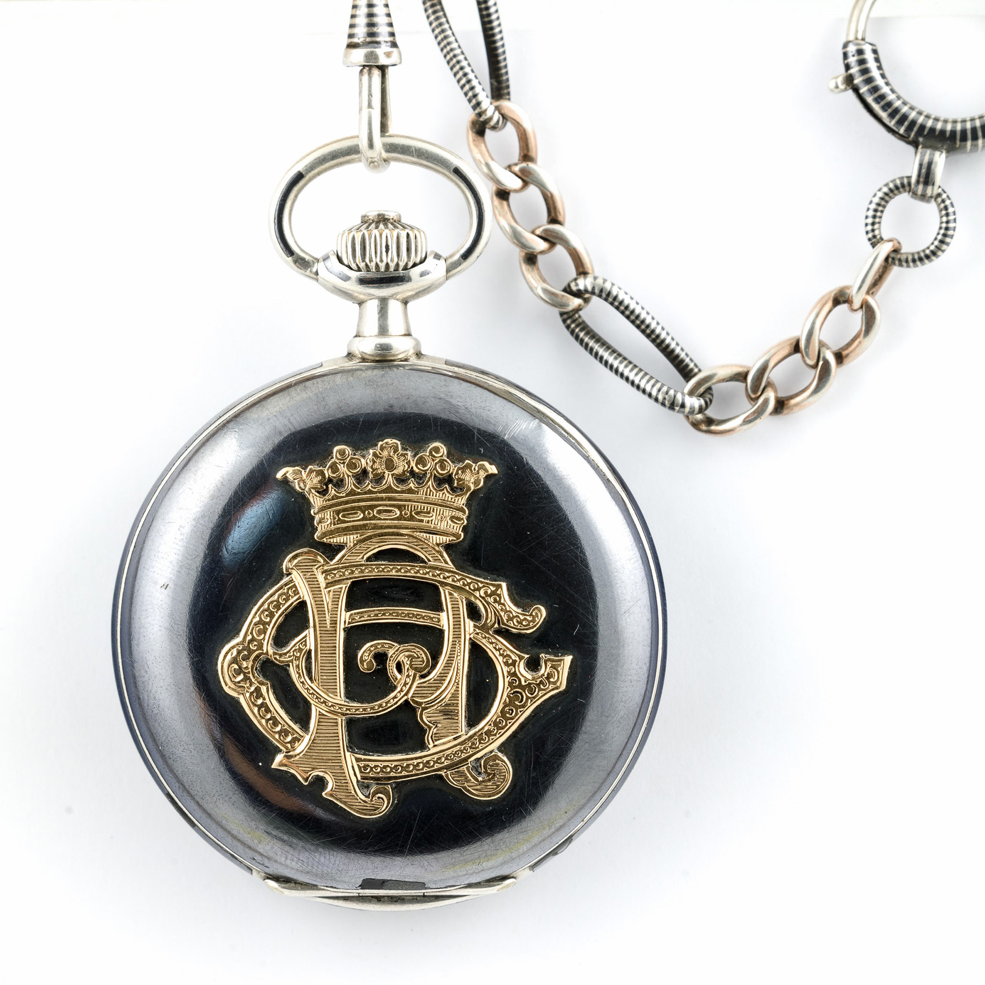 ZENITH - Orologio da tasca "Occhio di bue" d'argento con emblema marchionale in oro e firma de Sade con catena. Marchio/Brand: Zenith