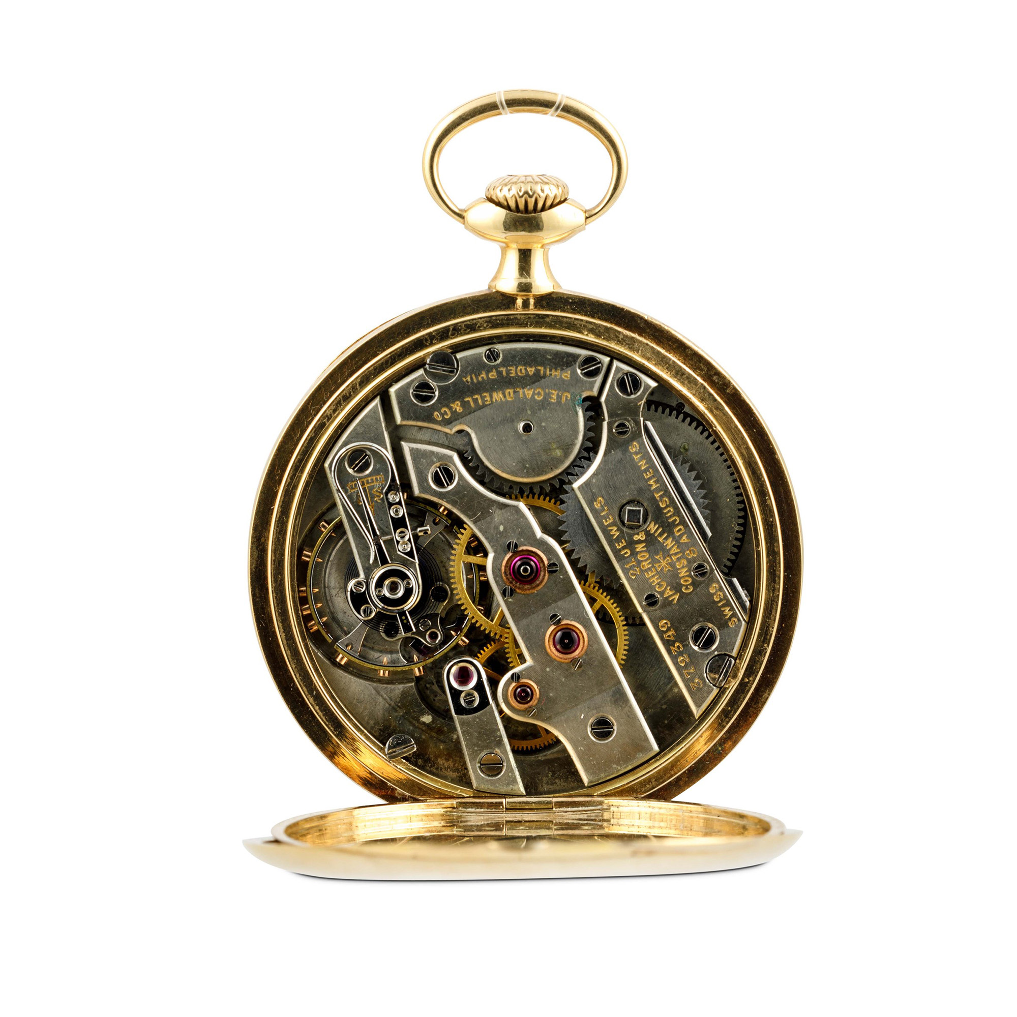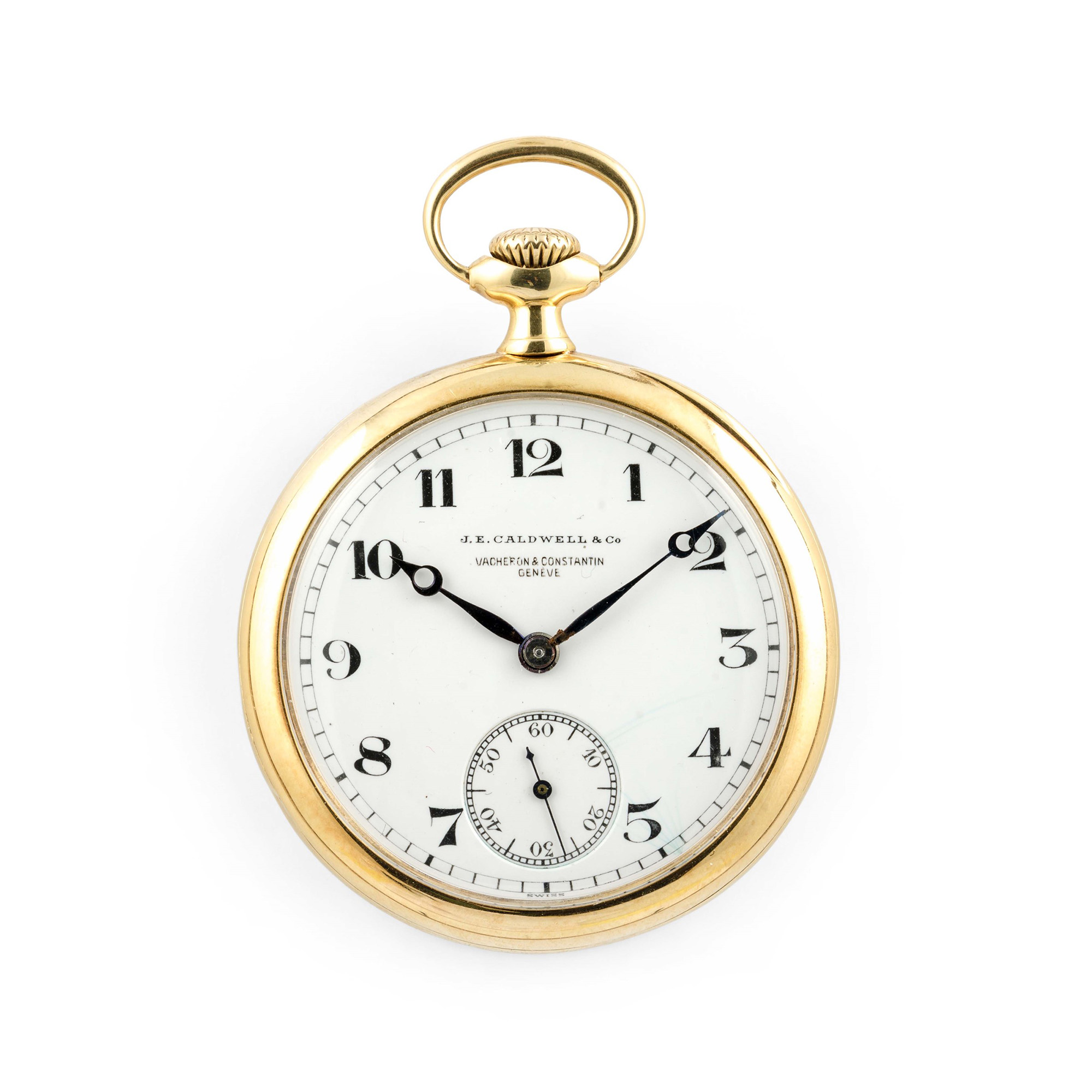 VACHERON & CONSTANTIN - Raro orologio da tasca con in oro 18k con firma del rivenditore americano "J. E. Caldwell & Co" su quadrante, cassa e meccanismo.