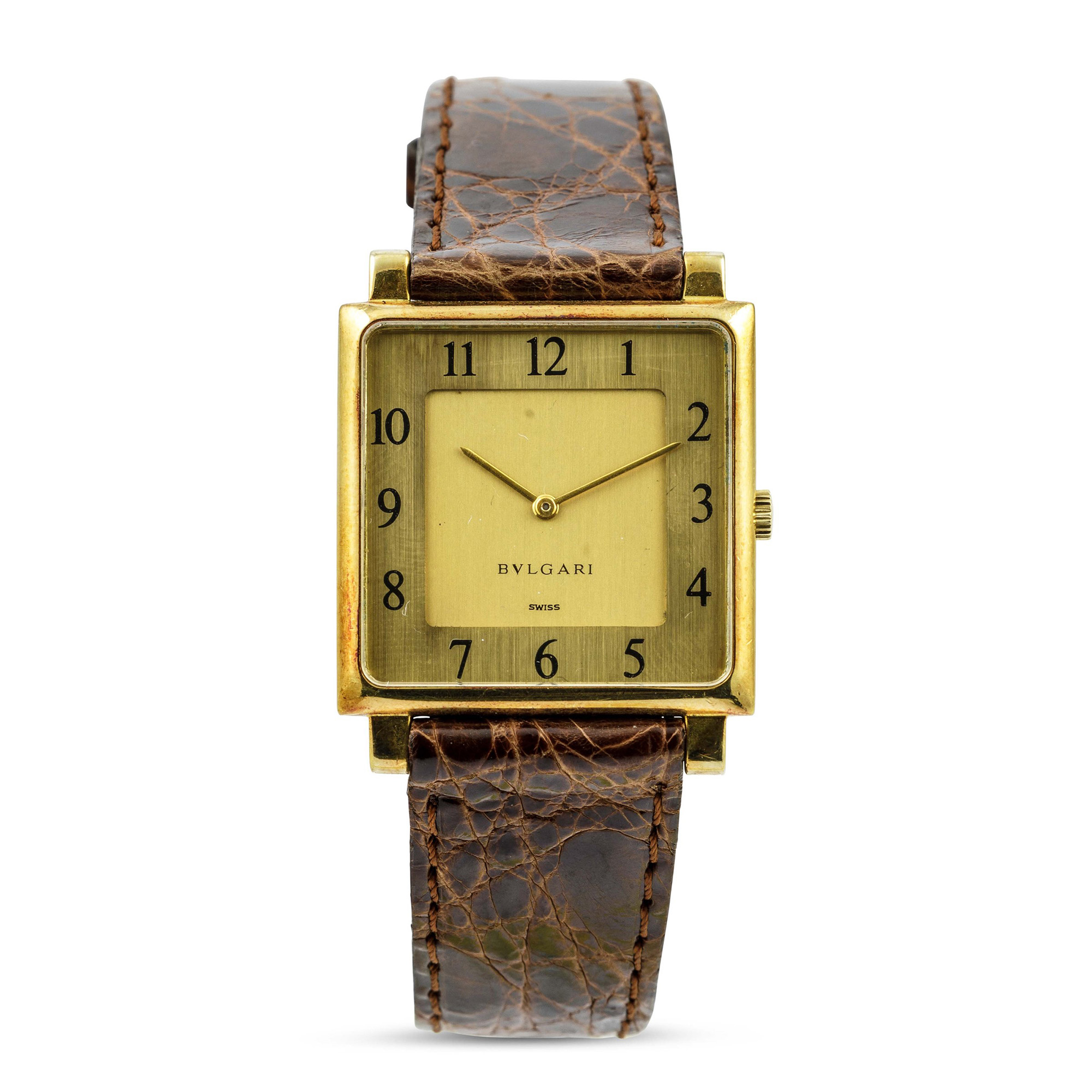 BULGARI - Orologio d'oro di forma carrè extrapiatto anni '70, carica manuale quadrante champagne