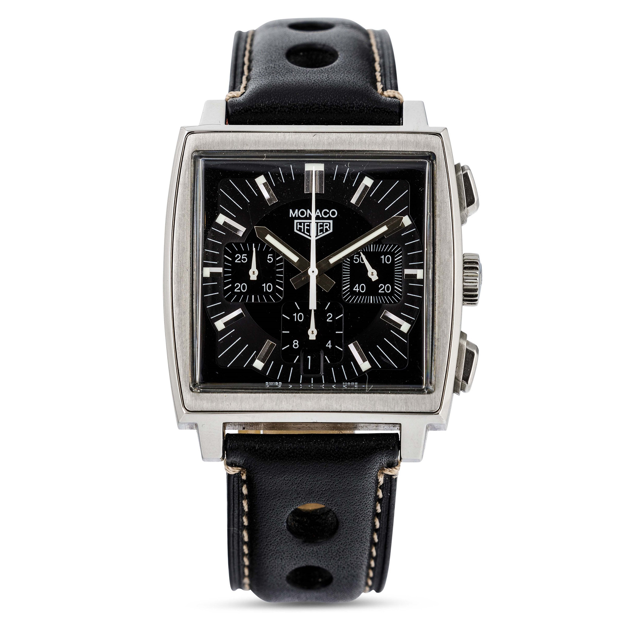 Lotto 108 | TAG HEUER - Monaco CS2111, cronografo automatico in acciaio, tasti quadri e cinturino in pelle rally. Accompagnato da scatola e garanzia