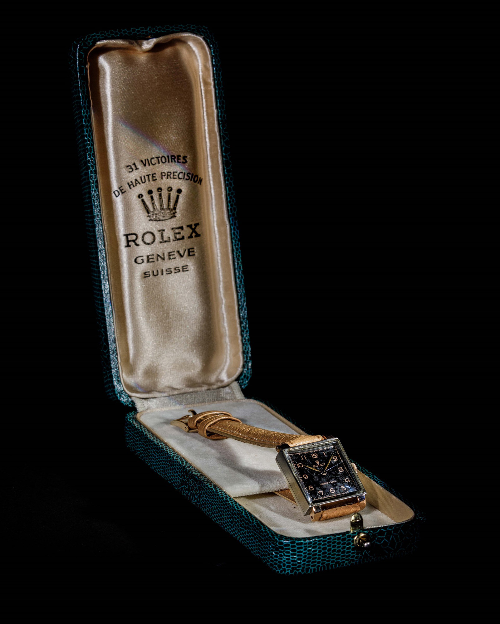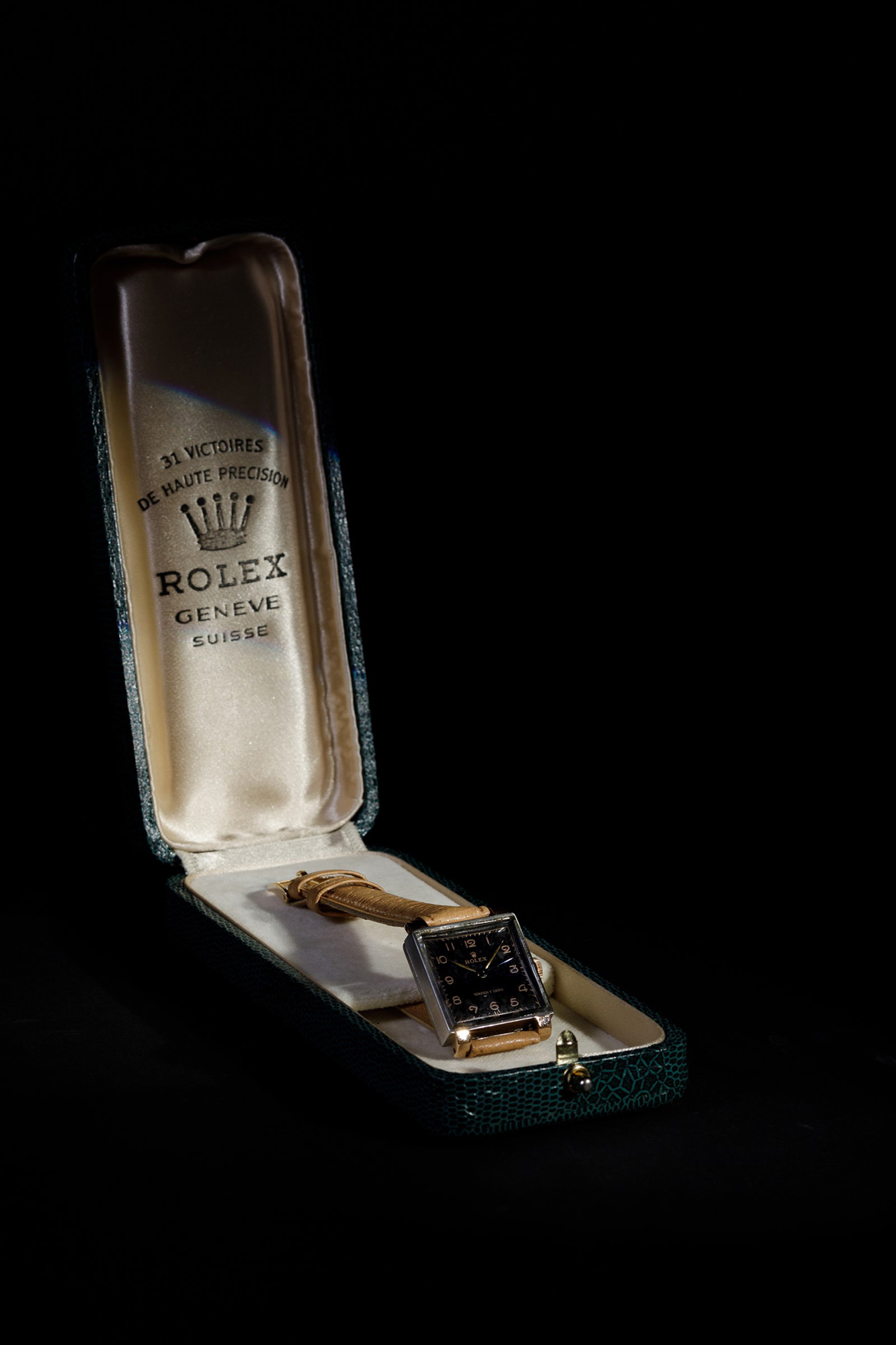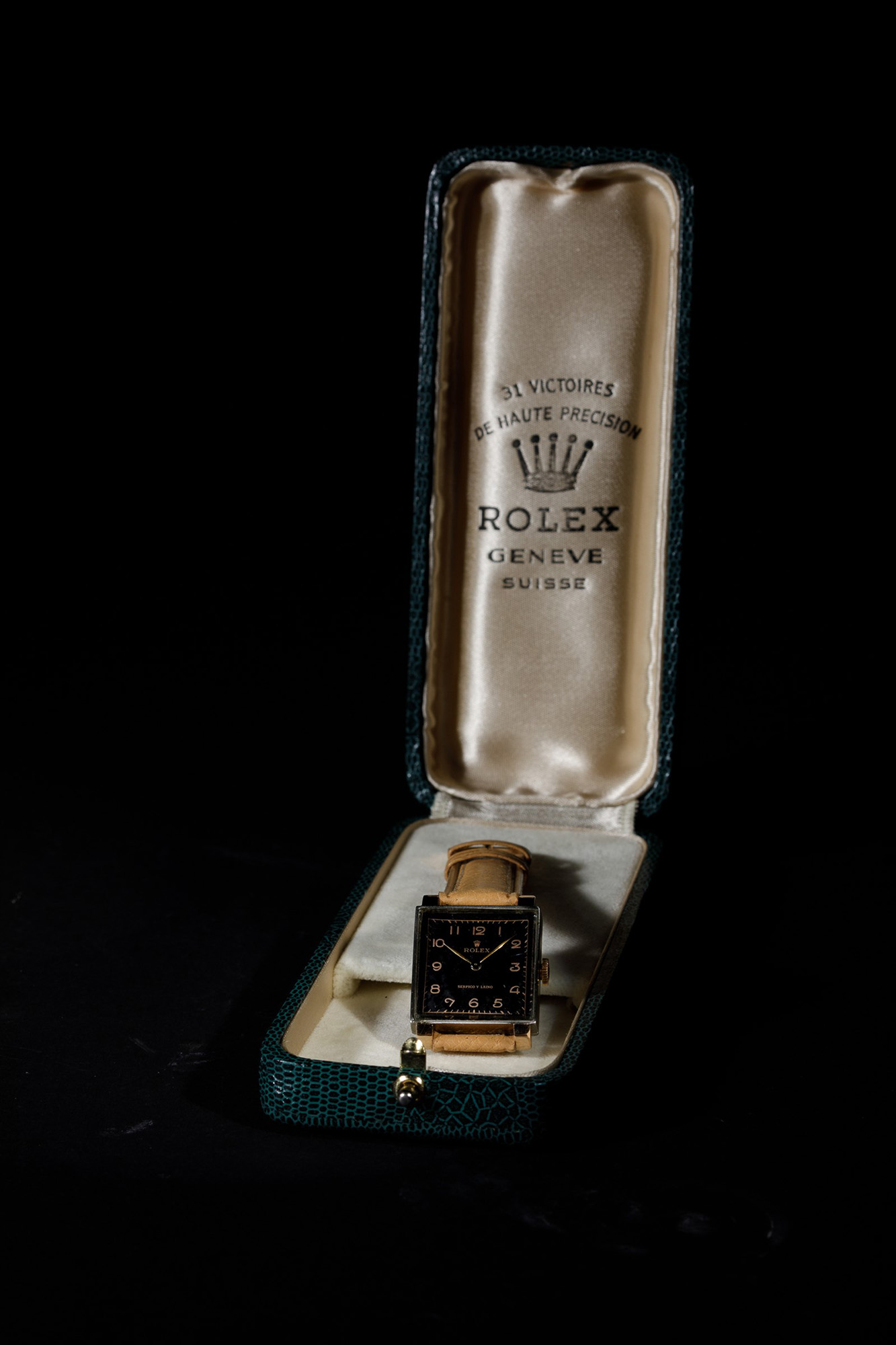 ROLEX - "Serpico y Laino" di forma Carrè ref. 3535 con cassa in acciaio e oro rosa 18k, quadrante nero gilt con numeri Breguet e firma rivenditore