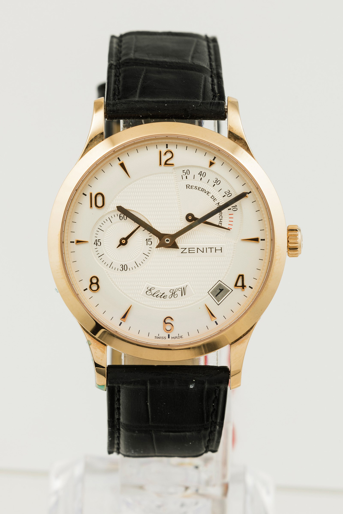 ZENITH - Elite HW oro rosa 18k con riserva di carica, datario e secondi al nove. Accompagnato da scatola originale e garanzia NOS. Marchio/Brand: Zenith