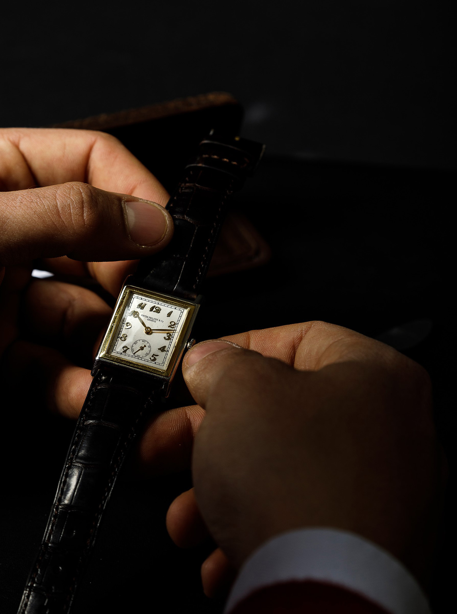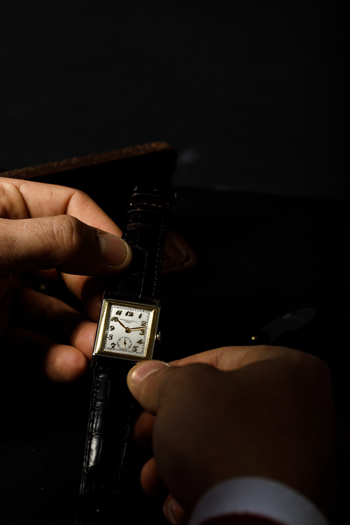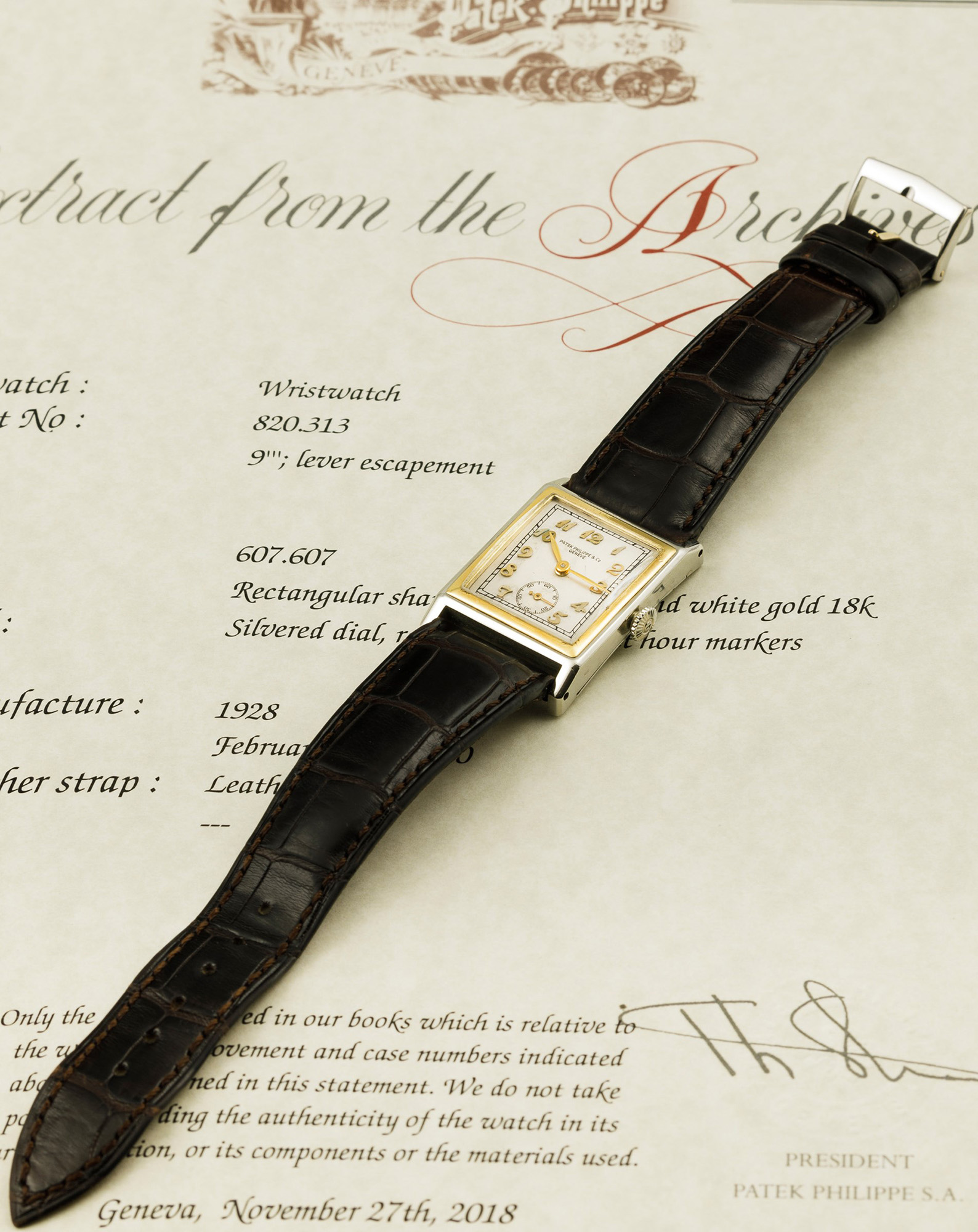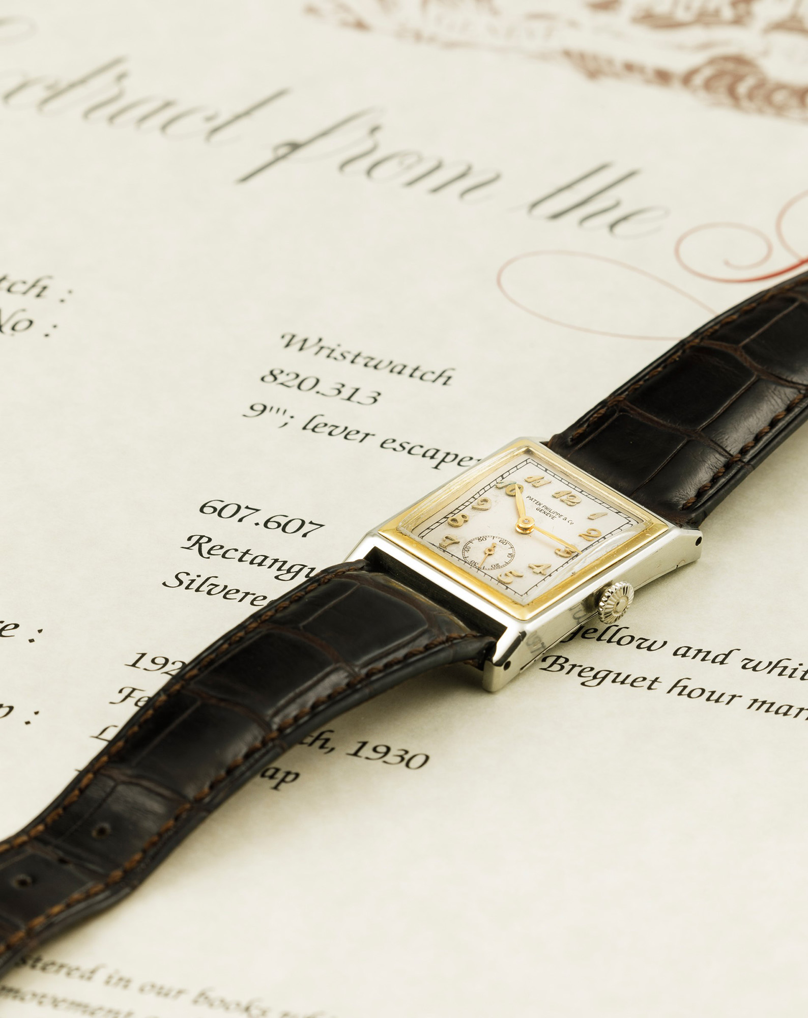 PATEK PHILIPPE - Raro orologio di Forma anni '30 con cassa d'oro 18k bitonale. Con scatola ed Estratto d'Archivio