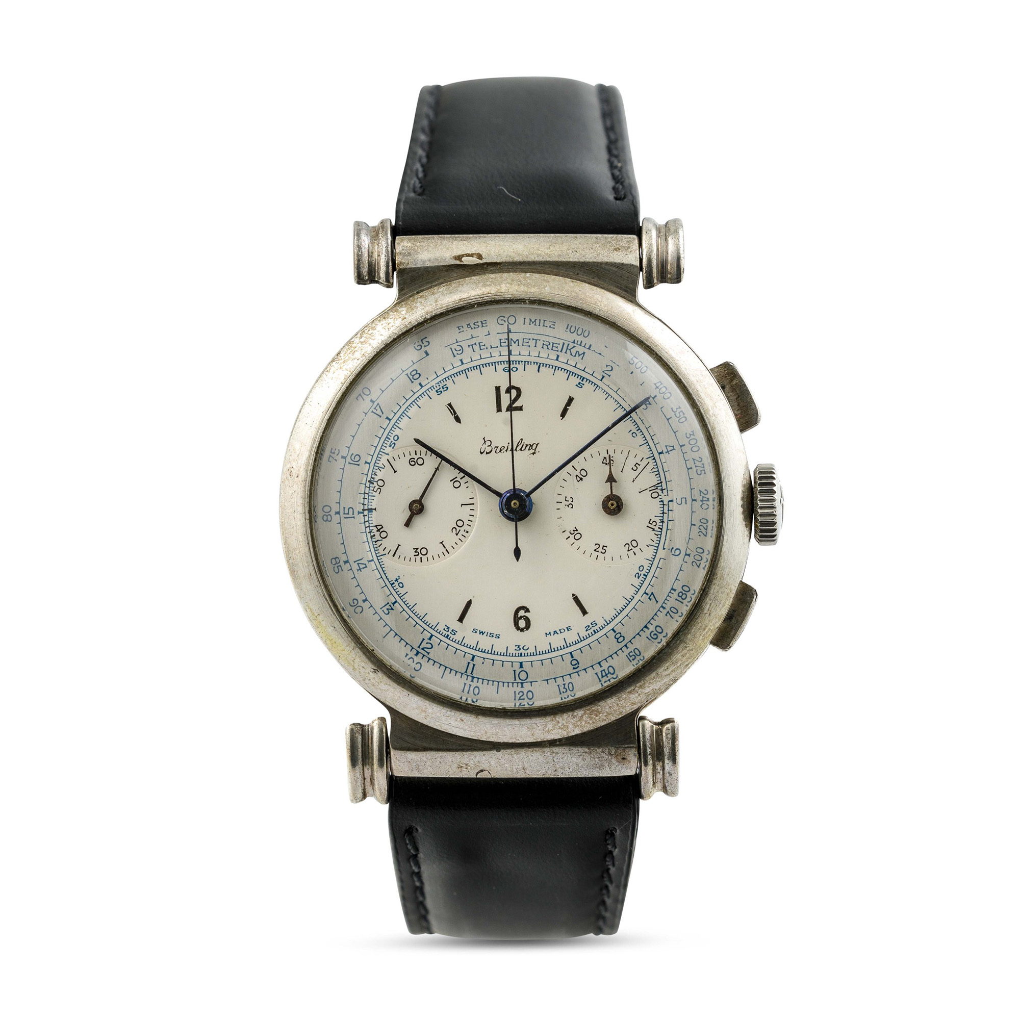 BREITLING - Cronografo due contatori con cassa in argento 800 con anse snodate anni '40. Marchio/Brand: Breitling