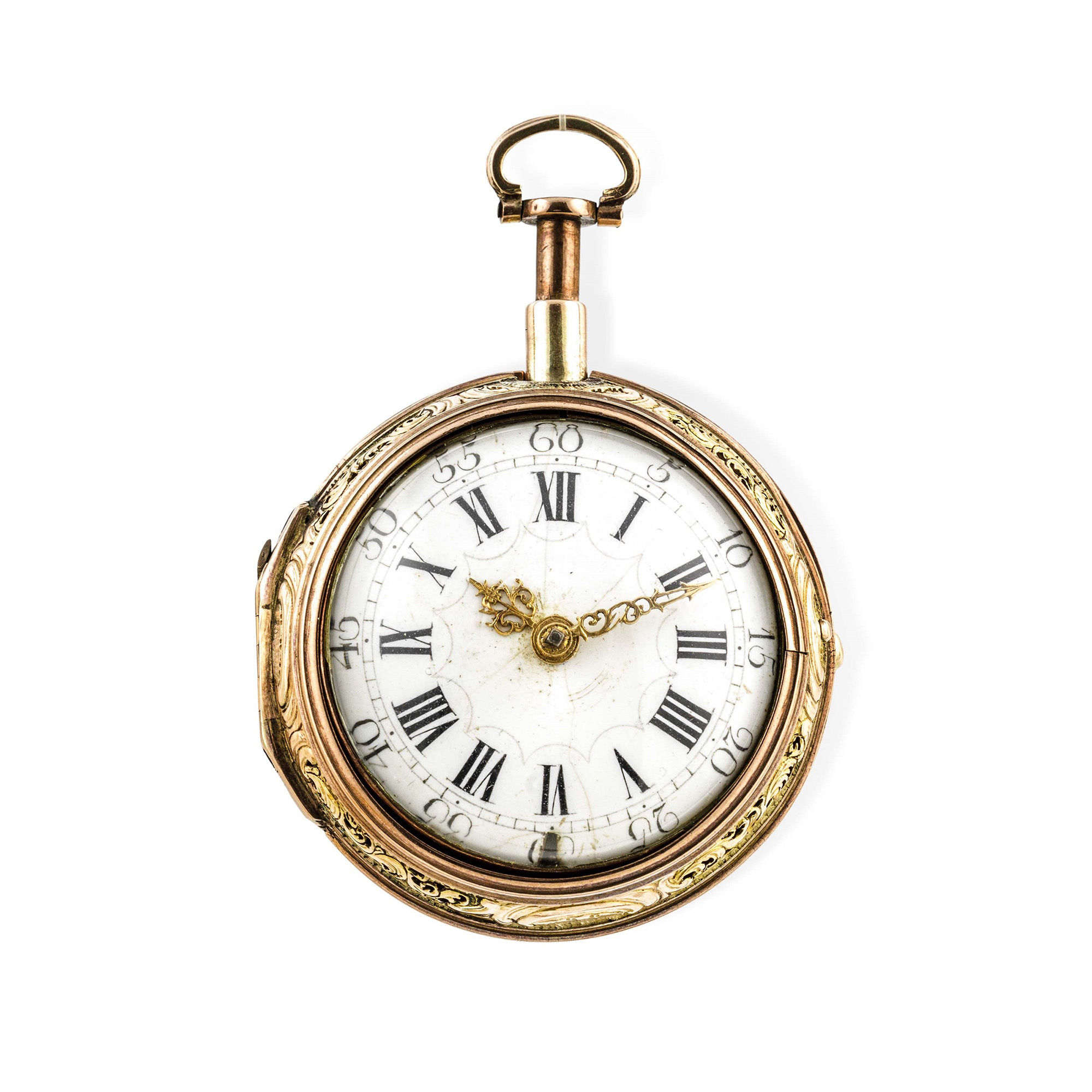 CHARLES CABRIER - Orologio da tasca con suoneria ore e quarti in doppia cassa in oro sbalzata ed incisa con scappamento a verga