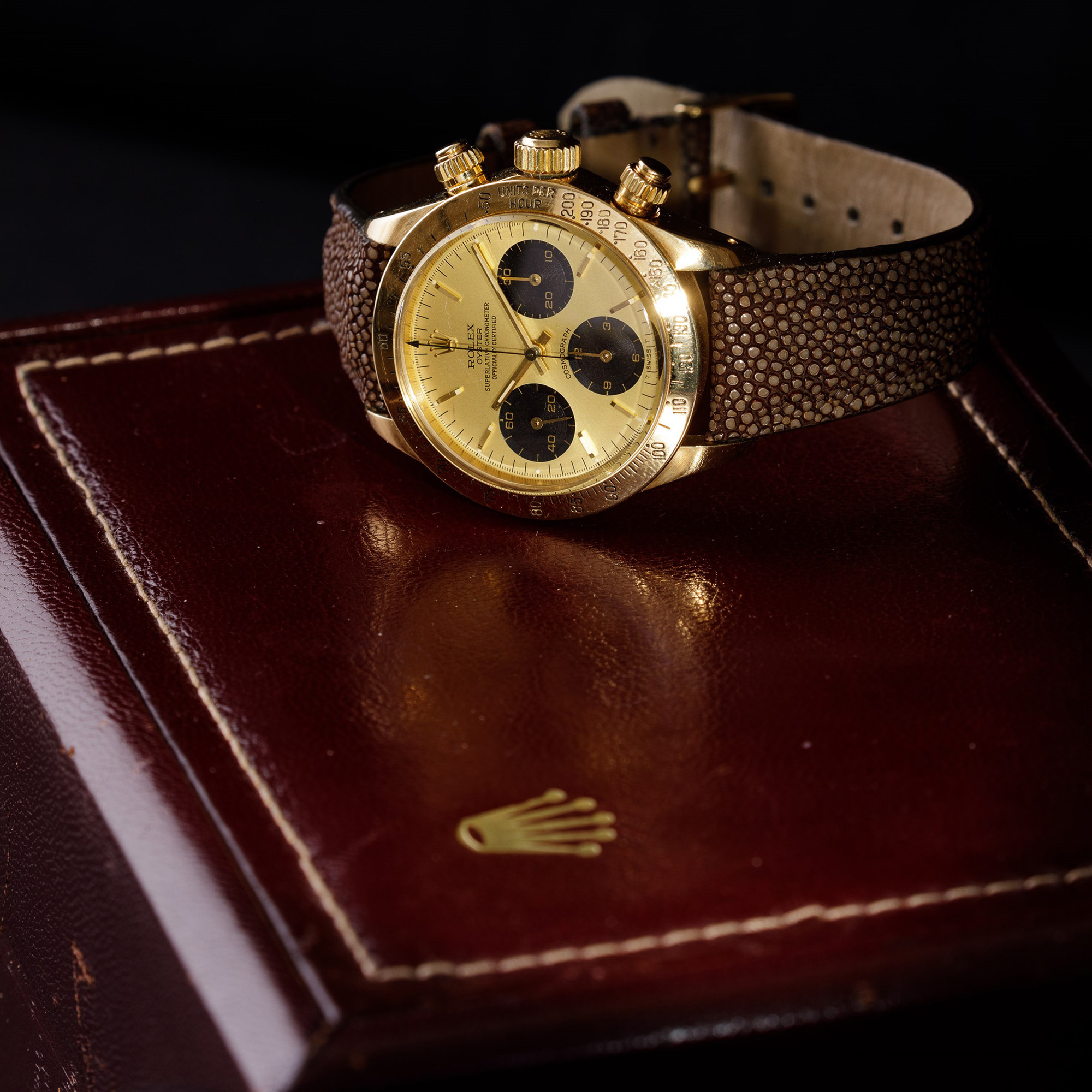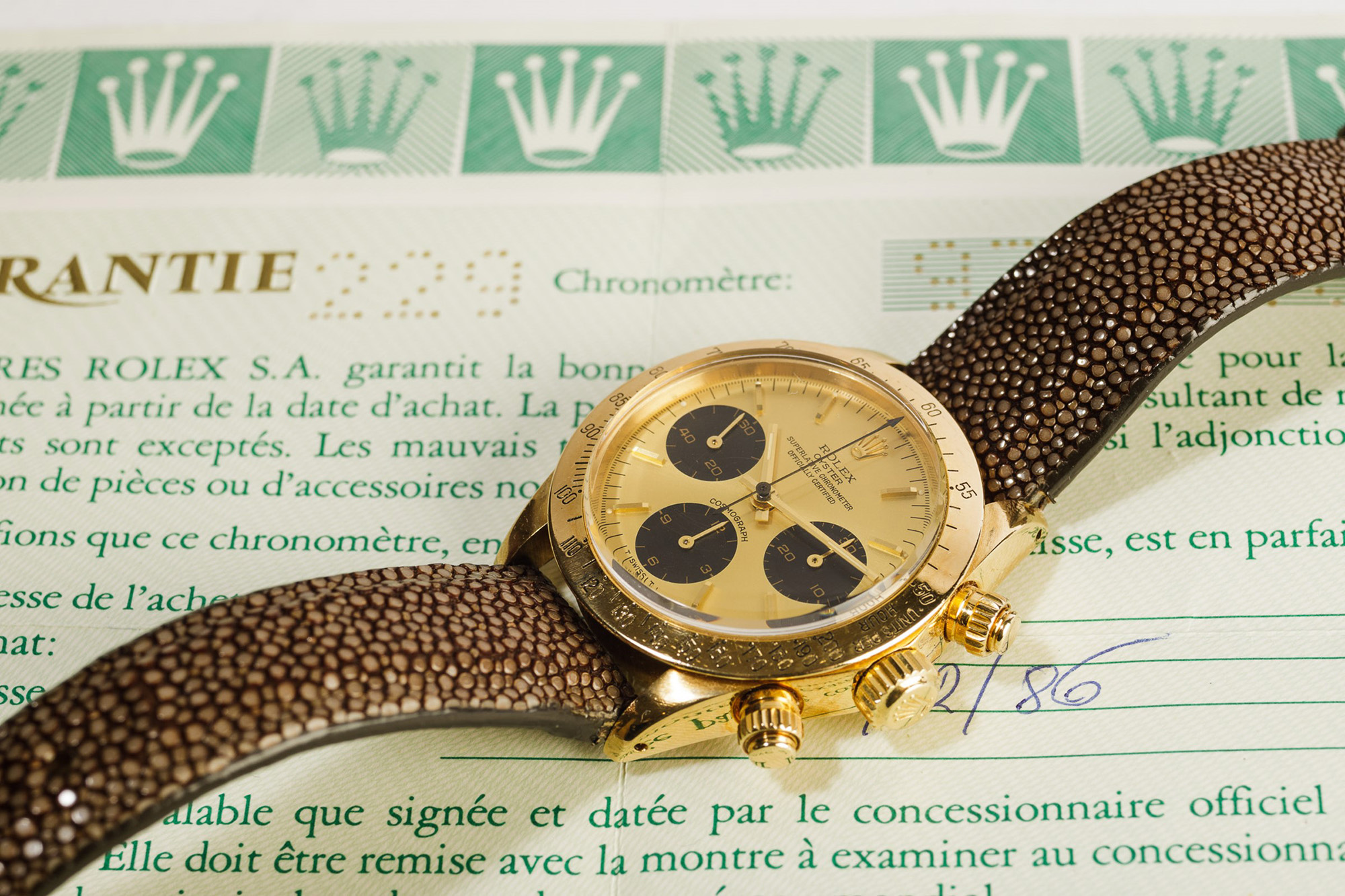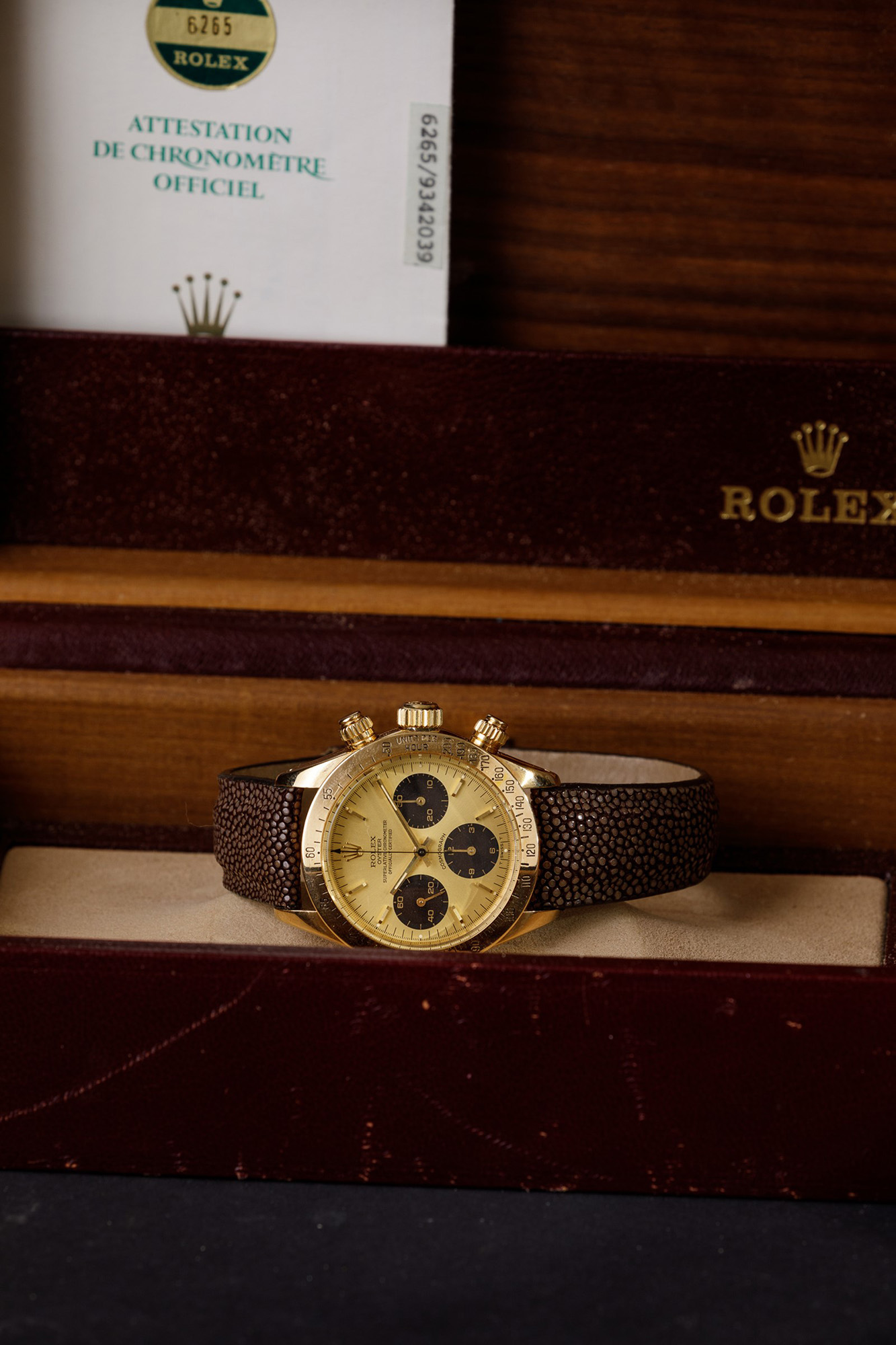 ROLEX - Oyster Superlative Chronometer Cosmograph, ref 6265/8 Daytona in oro 18k, 1986, raro esemplare con fondello CRS, scatola e garanzia.