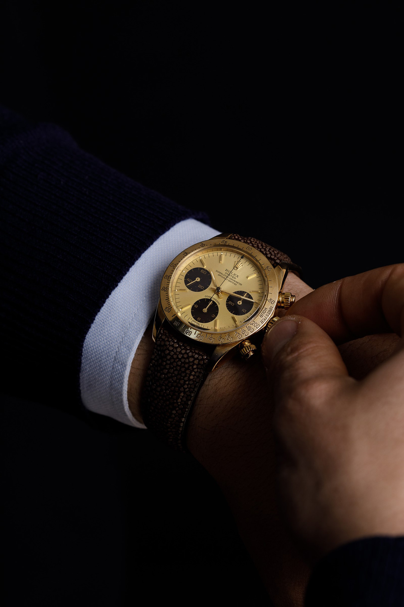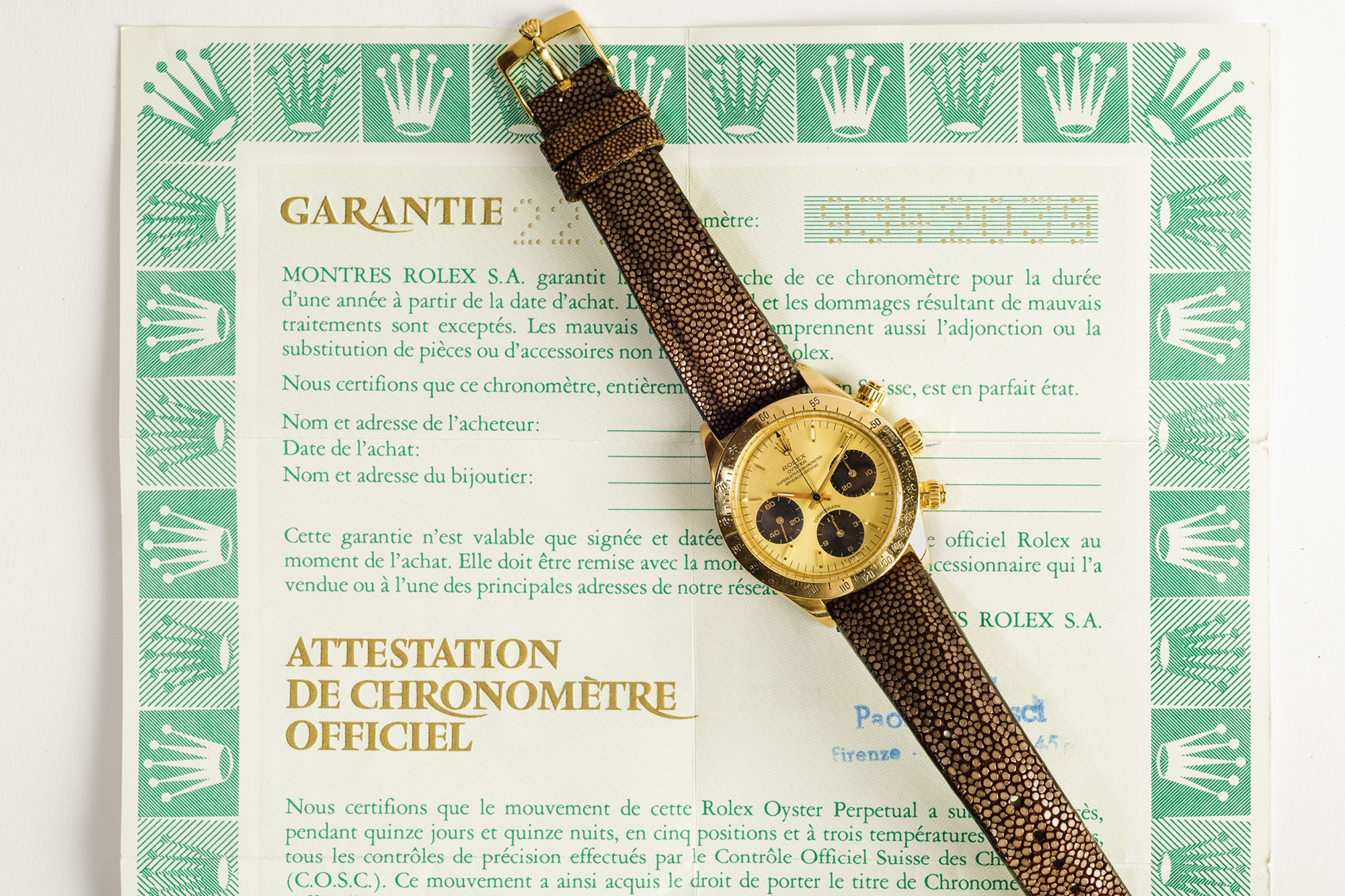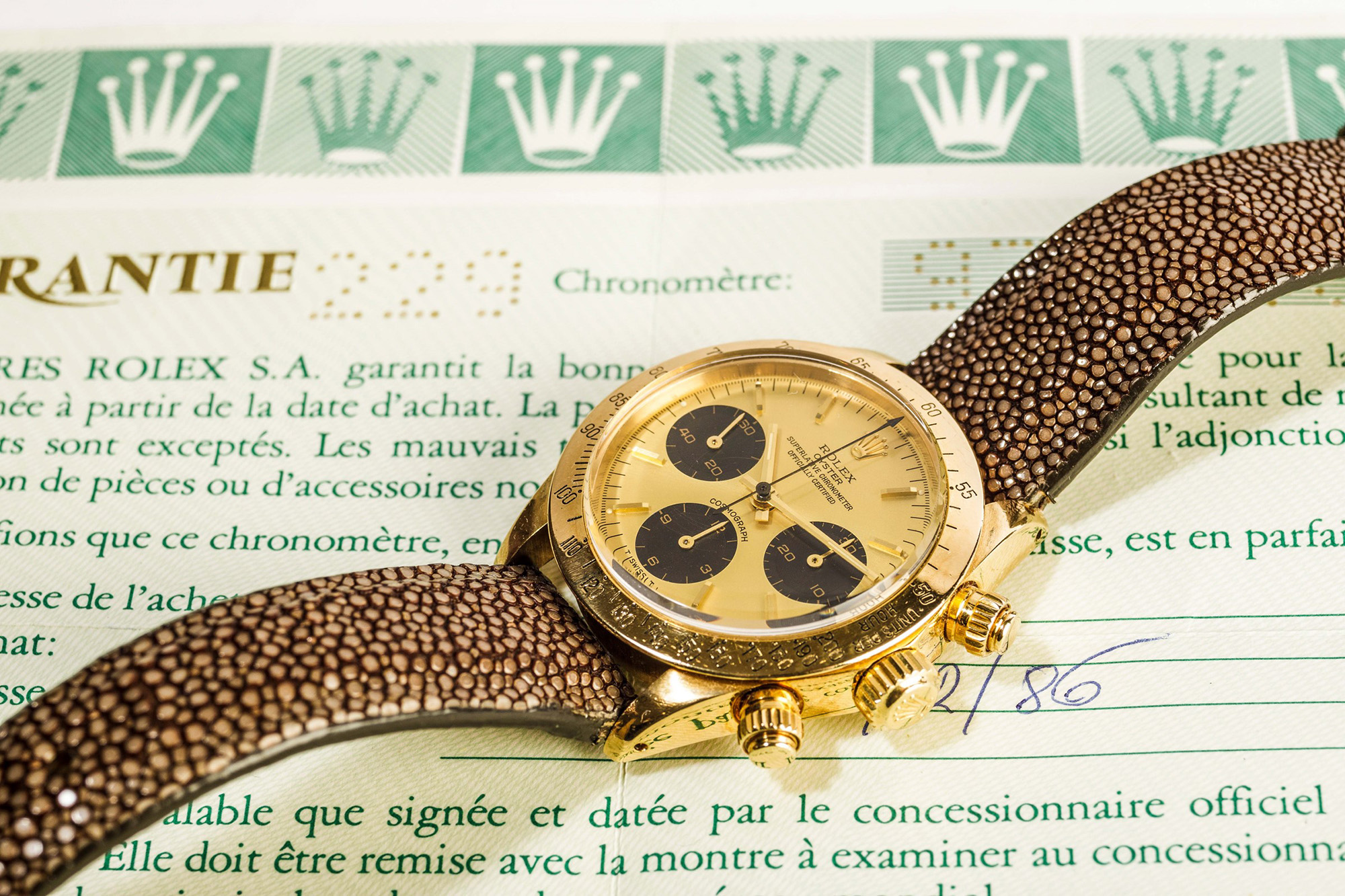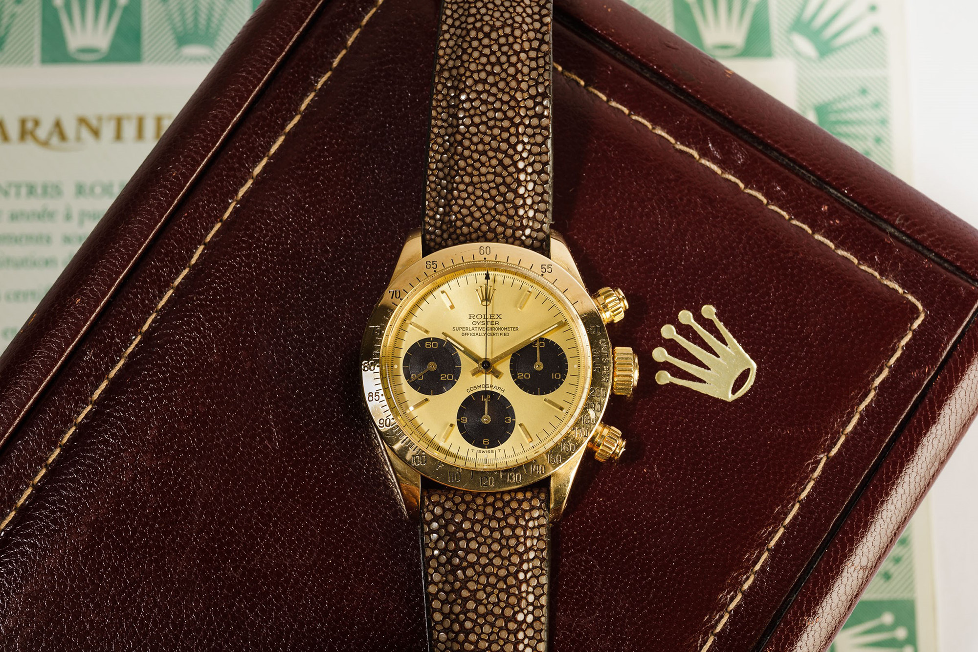 ROLEX - Oyster Superlative Chronometer Cosmograph, ref 6265/8 Daytona in oro 18k, 1986, raro esemplare con fondello CRS, scatola e garanzia.