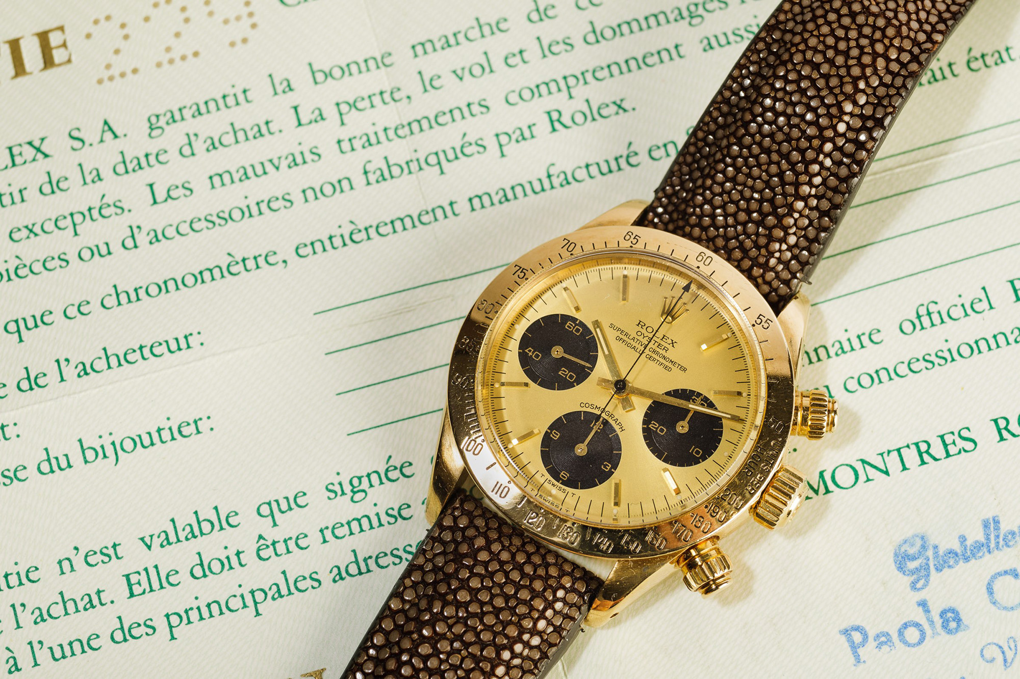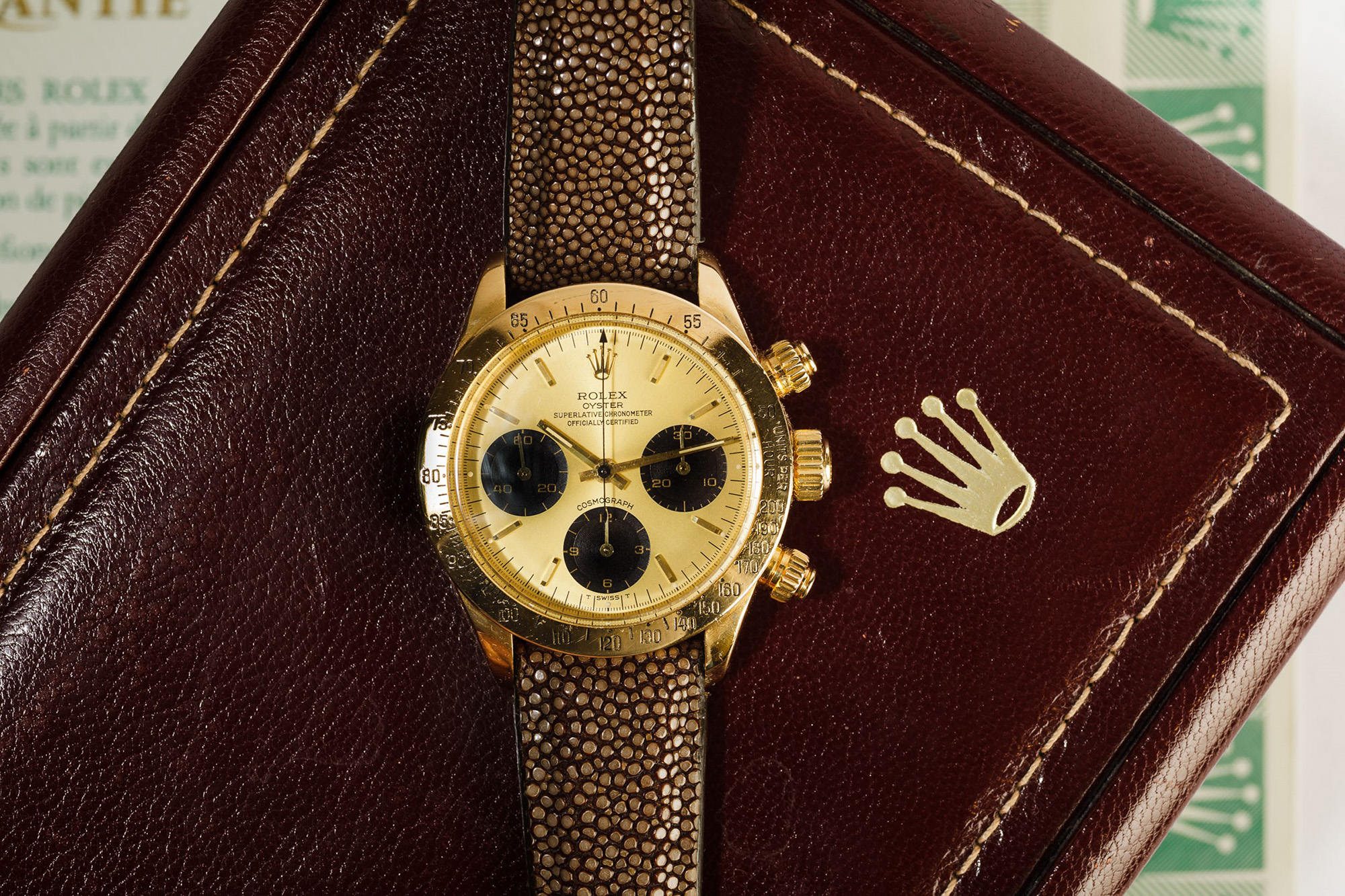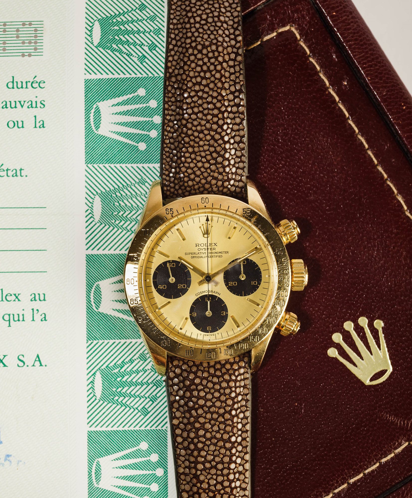 Lotto 180 | ROLEX - Oyster Superlative Chronometer Cosmograph, ref 6265/8 Daytona in oro 18k, 1986, raro esemplare con fondello CRS, scatola e garanzia.