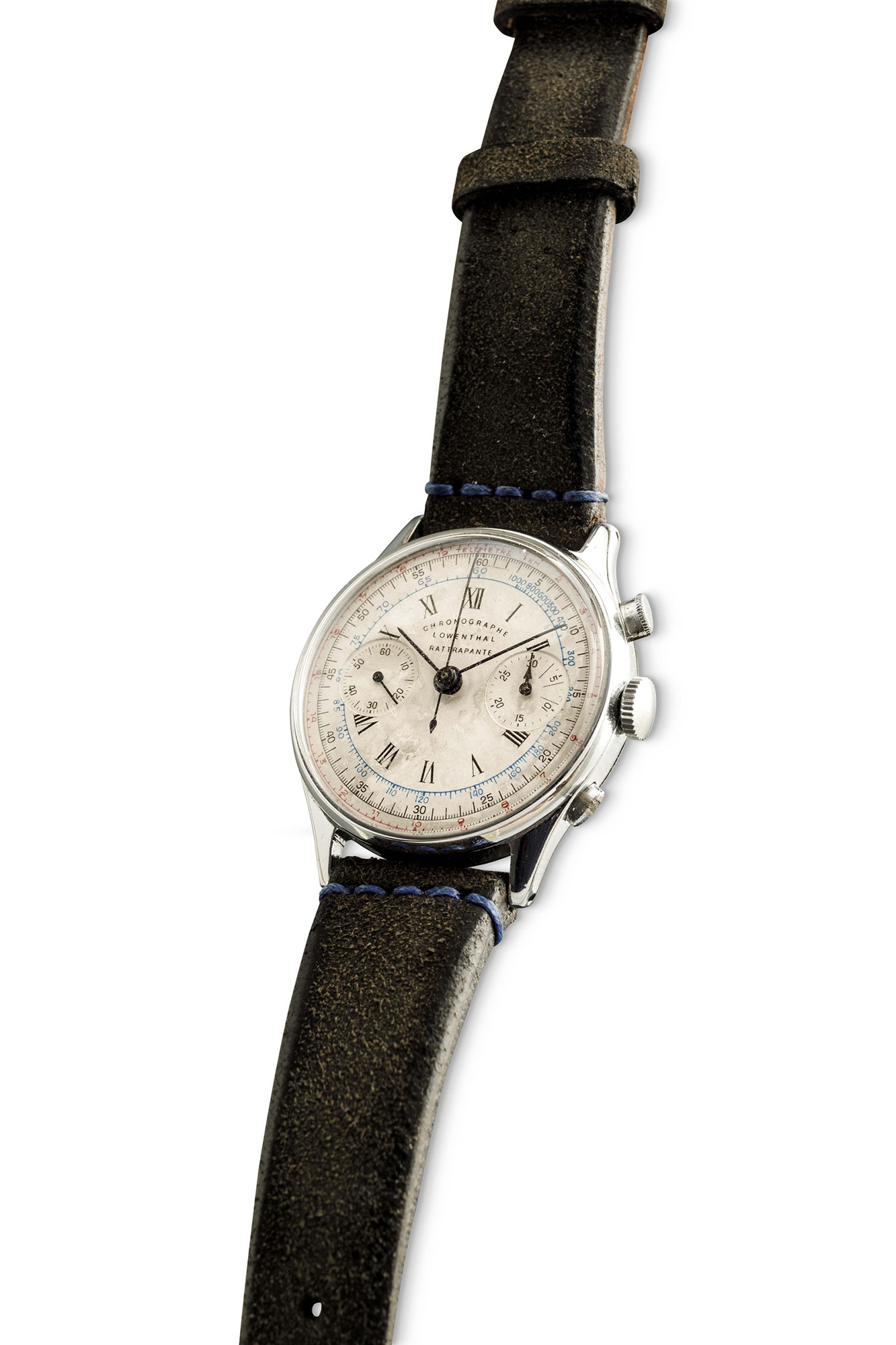 LOWENTHAL - Cronografo monorattrappante in acciaio, fondello a pressione, anni '40. Orologio professionale con scala tachimetrica e telemetrica.. Marchio/Brand: Lowenthal