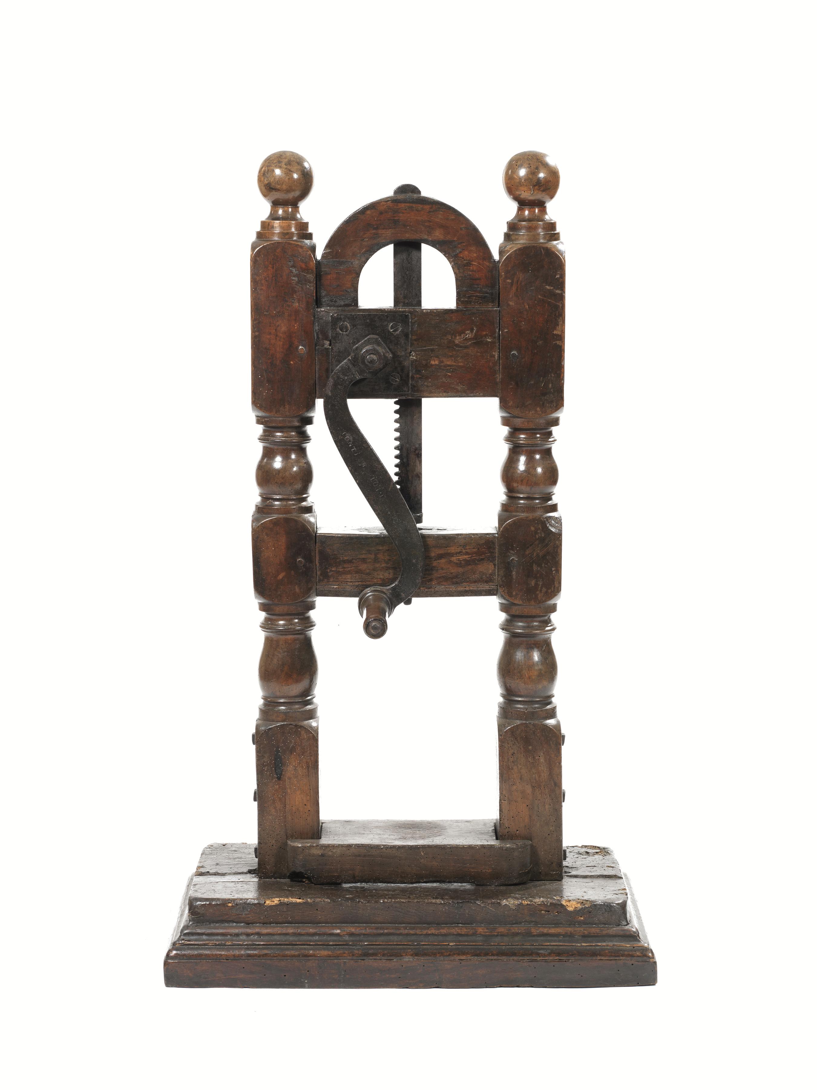 Grande imbottigliatore, Lombardia, sec. XVIII, in noce a patina scura e ferro...