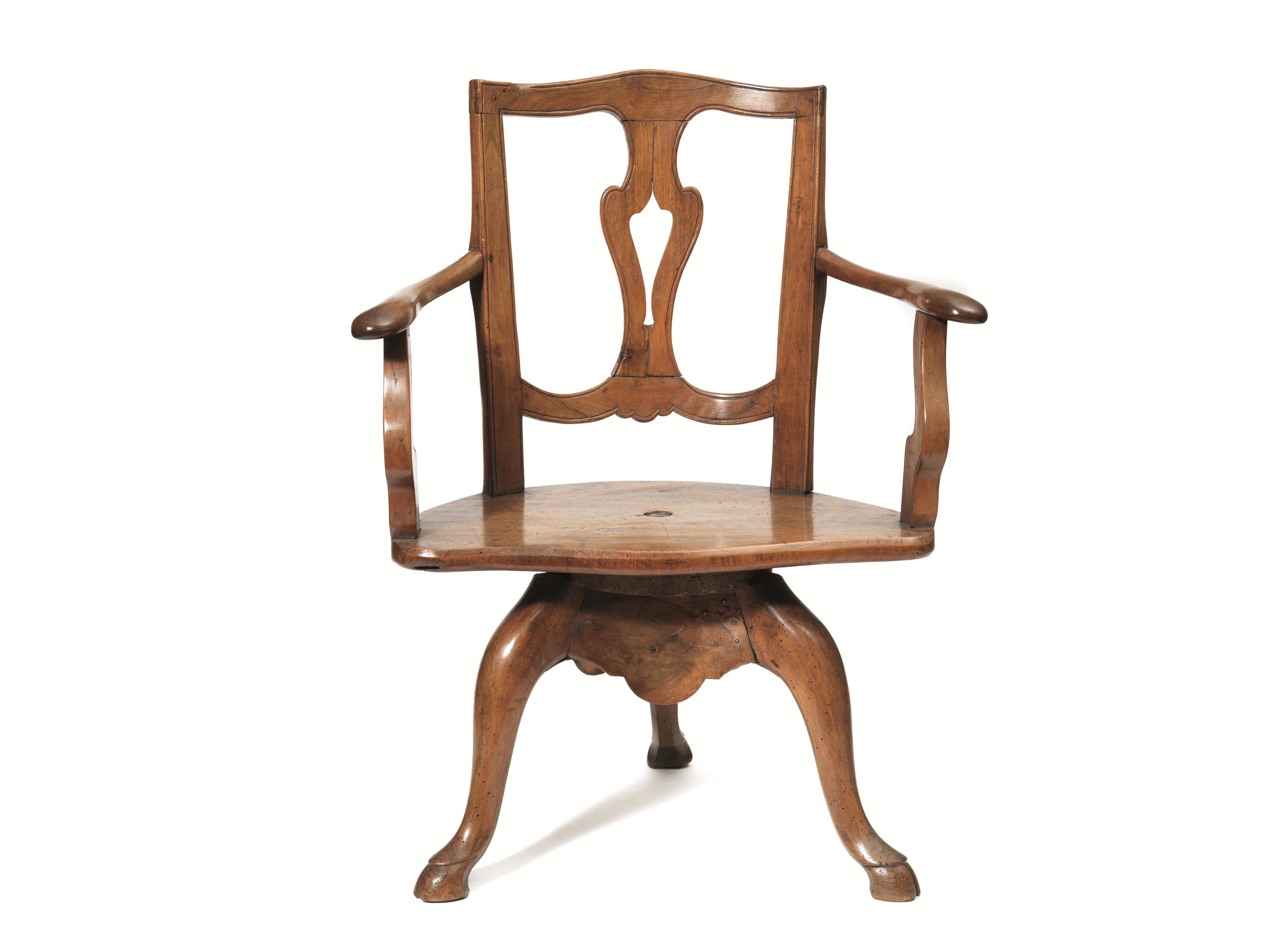 Poltrona girevole, Toscana, seconda metà sec. XVIII, in noce a patina
