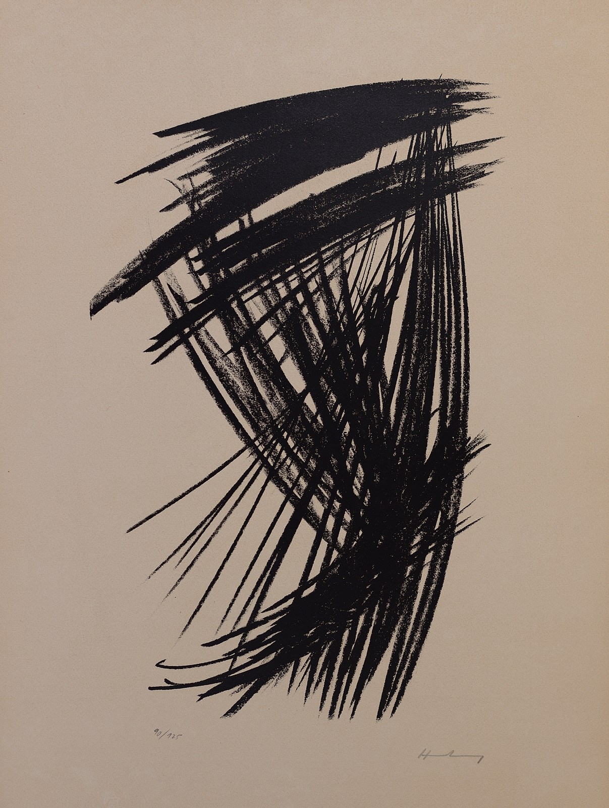 HARTUNG HANS (1904 - 1989) L. 15. 1957. Litografia. Cm 50,00 x 65,00. Es. 90/125. Firma a matita in basso a destra. Cat. n. 117. Edition d'Art "L'oeuvre gravée". Zurich. Paris. Etichetta al retro. Cornice presente