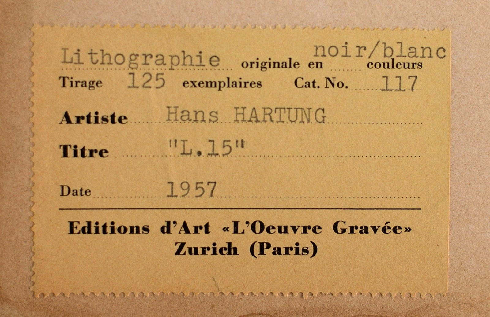HARTUNG HANS (1904 - 1989) - L. 15.