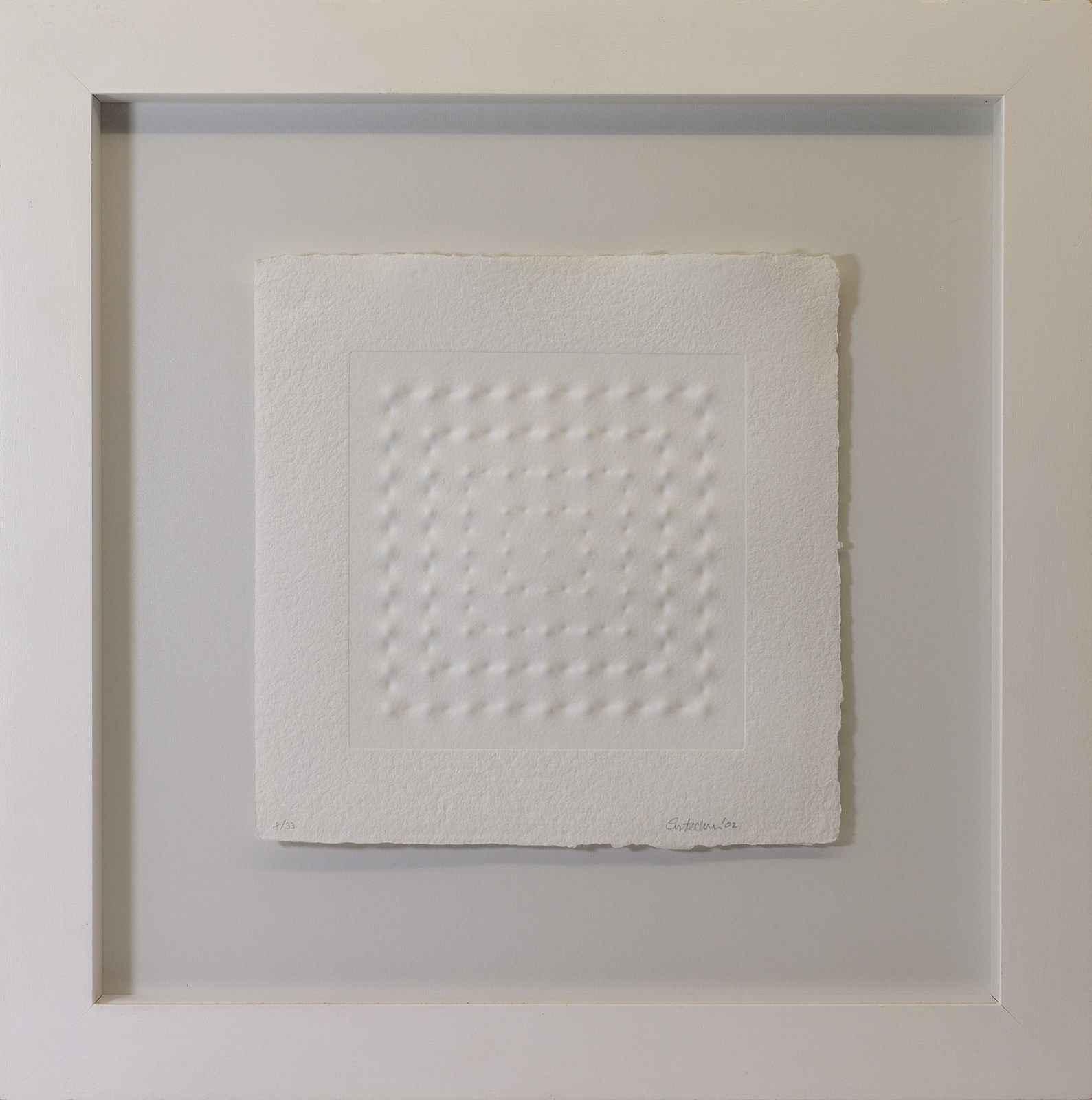 CASTELLANI ENRICO (1930 - 2017) Senza titolo. 2002. Serigrafia con estroflessioni calcografiche. Cm 30,00 x 30,00. Es. 8/99. Firma e data in basso a destra a matita. Cornice presente