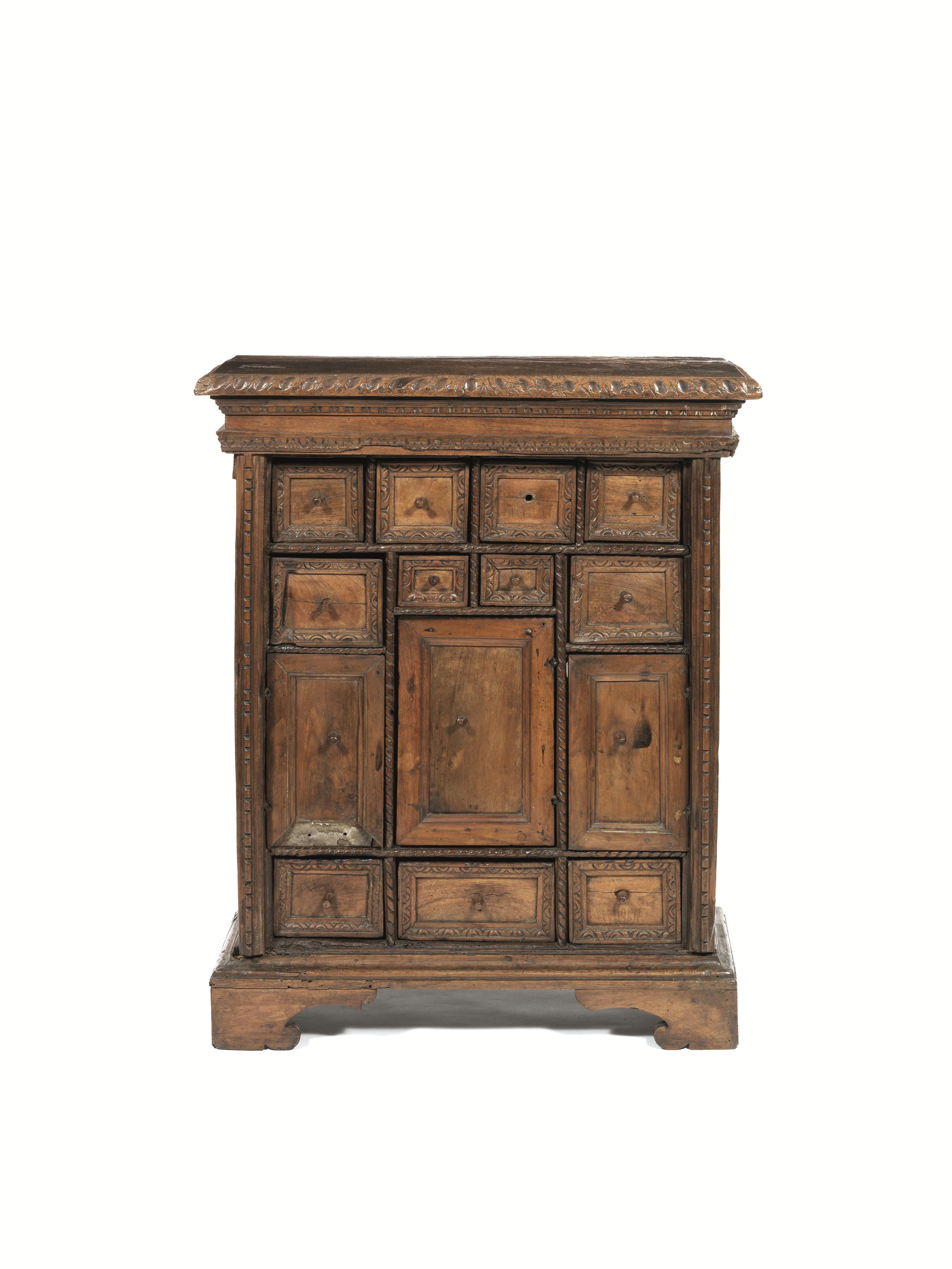Piccolo stipo, Italia centrale, metà sec. XVII, in noce a patina bionda,...