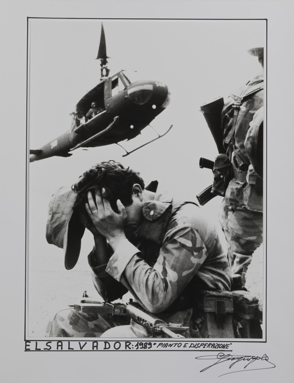 PEGOLI GIORGIO (n. 1938) Elsalvador: 1989 Pianto e disperazione. 1989. Fotografia. Cm 30,00 x 42,00. Titolo, firma e anno in basso. Al retro cartiglio dell'artista.