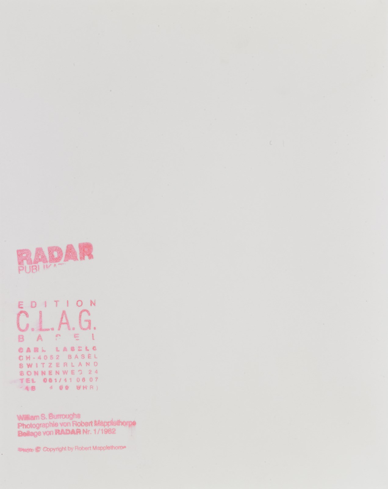 MAPPLETHORPE ROBERT (1946 - 1989) William S. Burroughs. 1982. fotografia bianco e nero. Cm 20,00 x 25,00. Al retro timbri Edition C.L.A.G., Basel, Radar Publikation e Copyright by Robert Mapplethorpe.