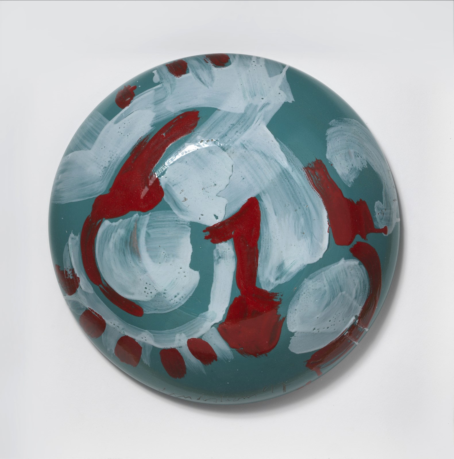 LINDSTRÖM BENGT (1925 - 2008) Senza titolo. Piatto in ceramica. Cm 33,00 x 33,00. Firma sul bordo esterno. Certificato di autenticità FBArte , Ostellato. Cornice presente