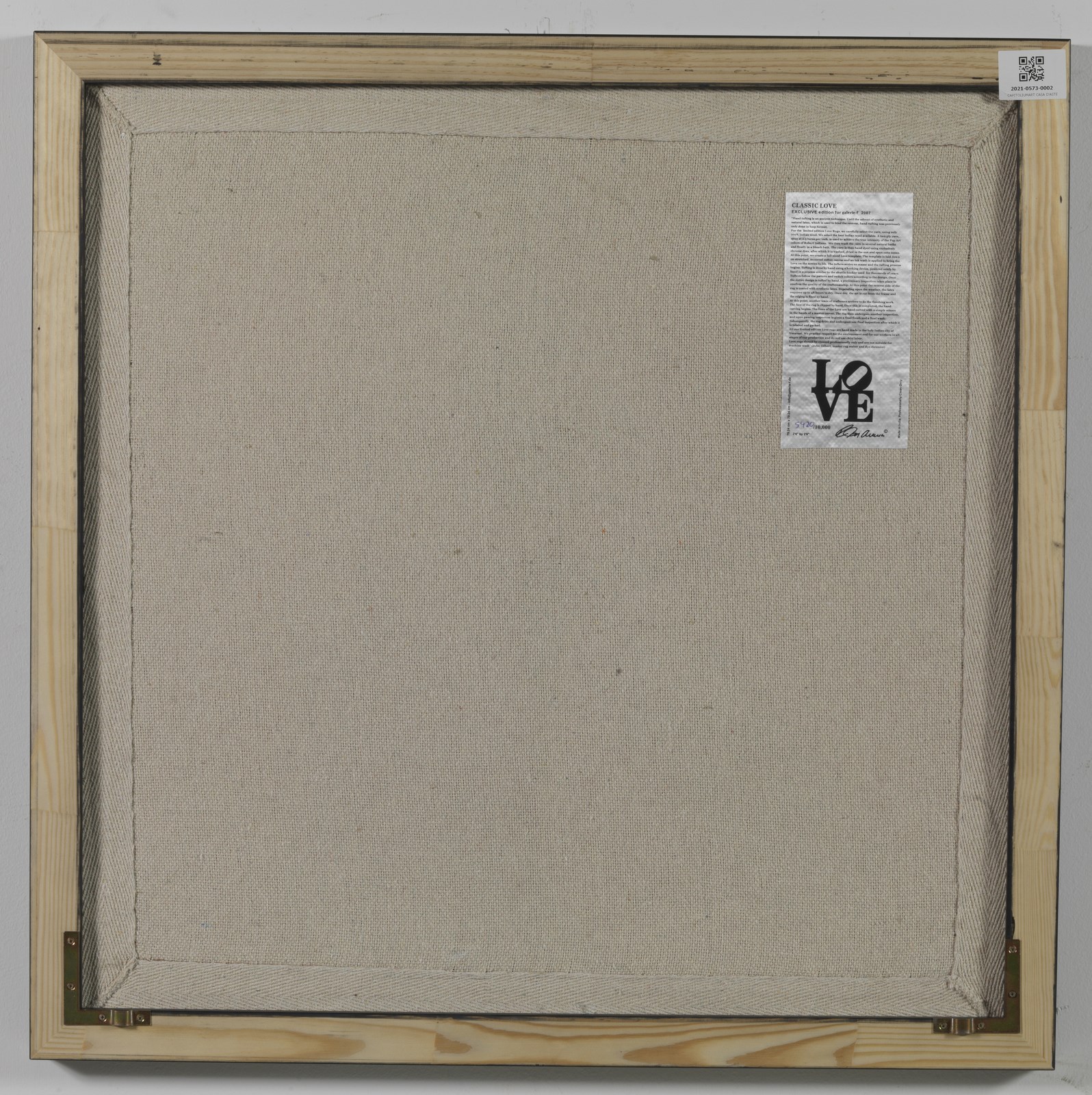 INDIANA ROBERT (1928 - 2018) Classic Love. Tappeto. Cm 76,00 x 76,00. 5420/10000. Al retro cartiglio descrittivo Galerie - F con tiratura e firma a stampa. Edizione esclusiva per Galerie - F, Kranenburg, 2007.