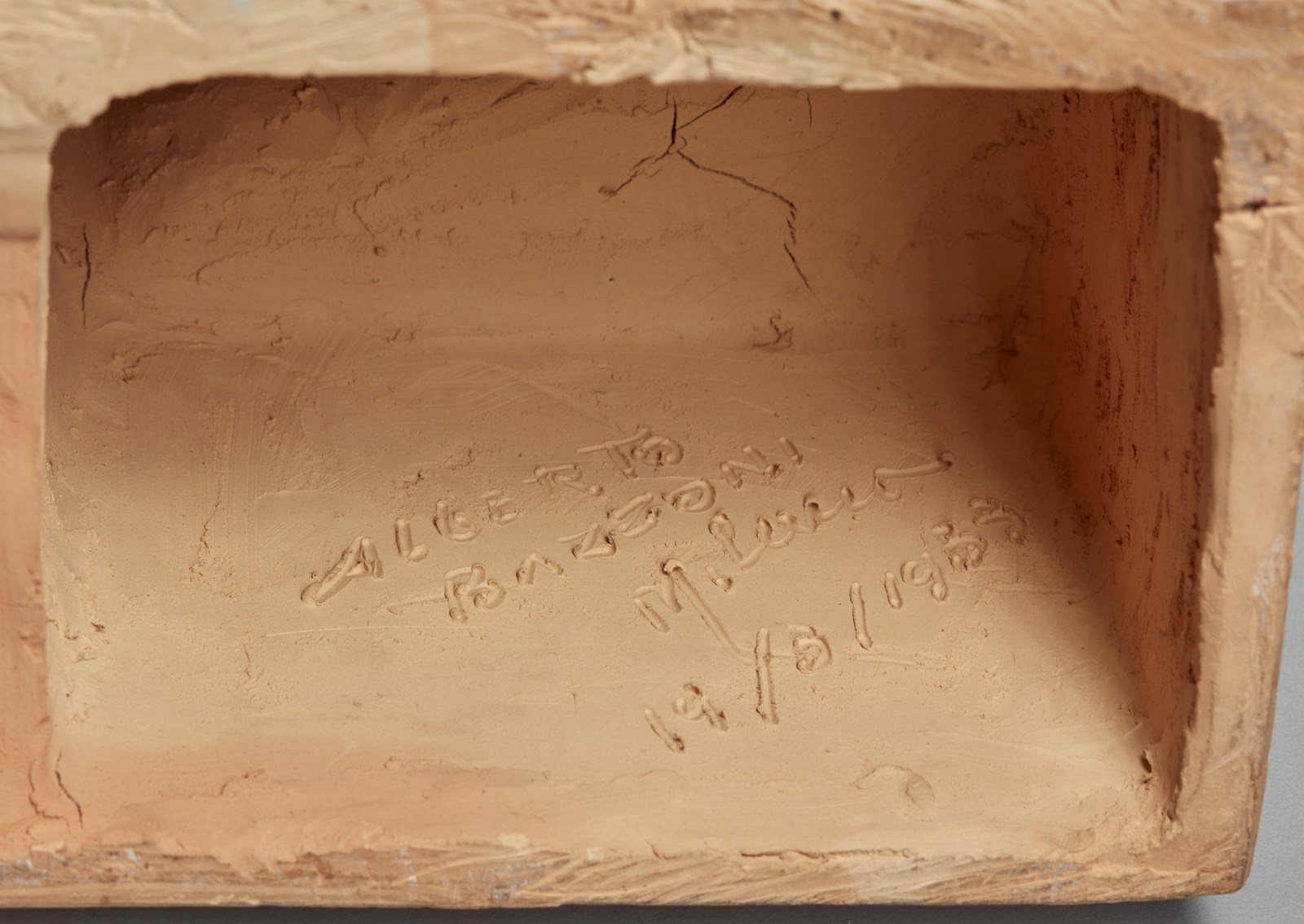 BAZZONI ALBERTO (1889 - 1973) Senza titolo. 1955. Terracotta. Cm 38,00 x 80,00 x 20,00. Firma e anno incise sotto la base.