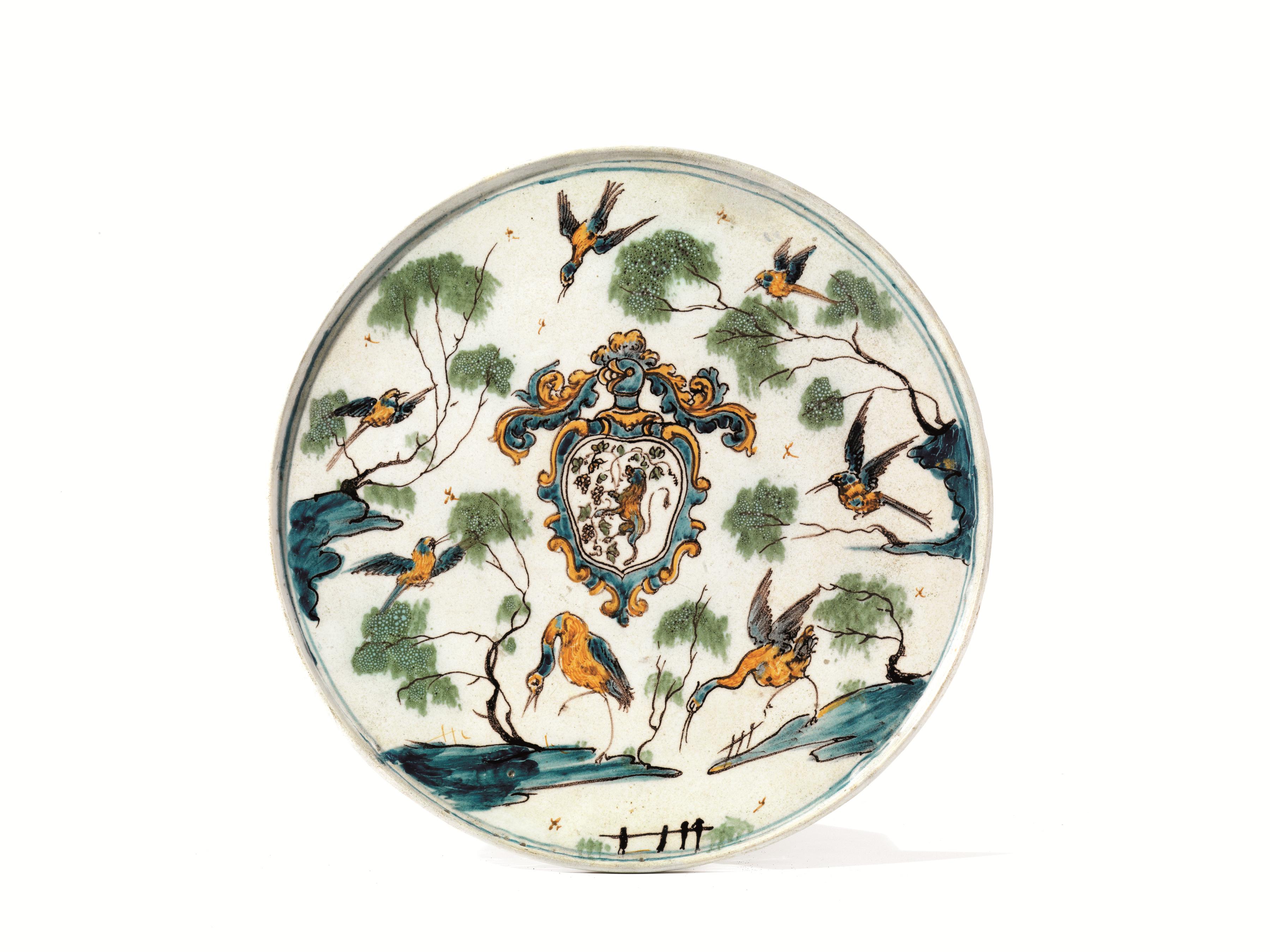volatili che incorniciano uno stemma araldico, diam. cm 34,5