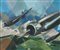 CHETOFI JOAN (n. 1916) Aerei in picchiata. Tempera su cartone. Cm 59,00 x 49,00. Firma in basso a destra. Cornice presente