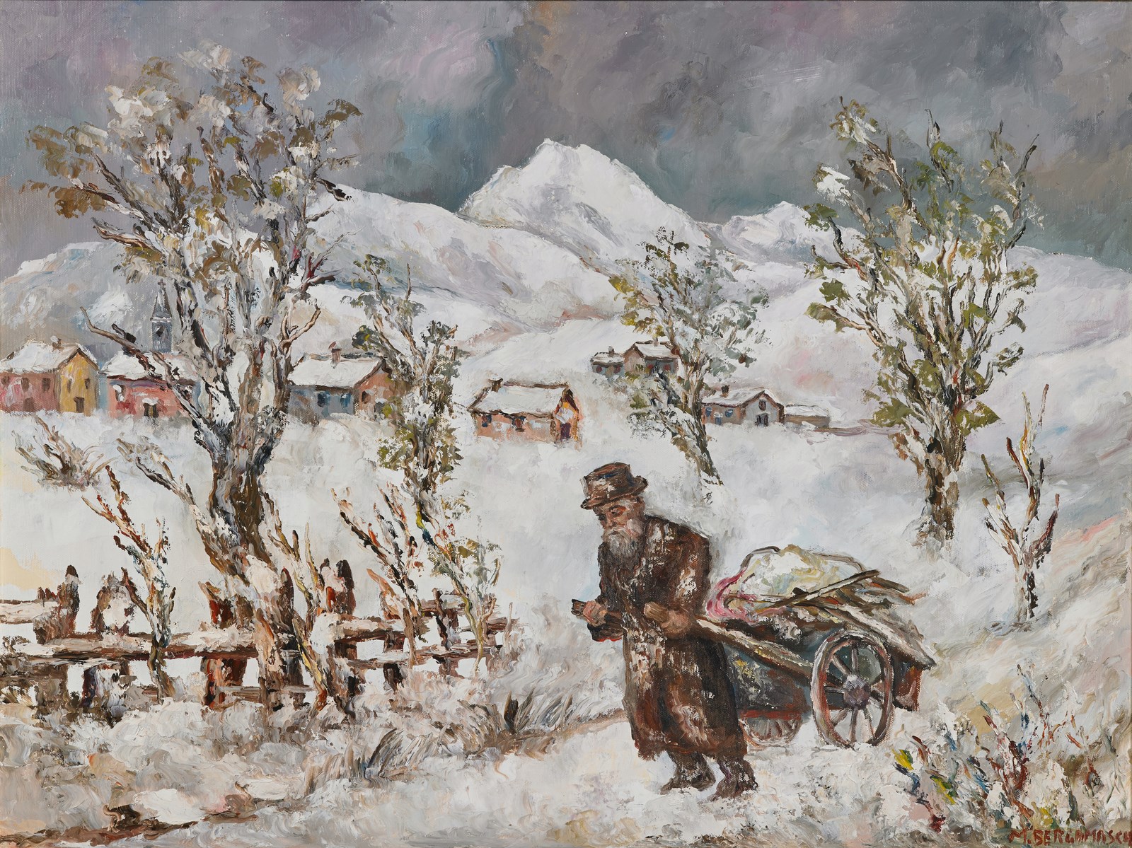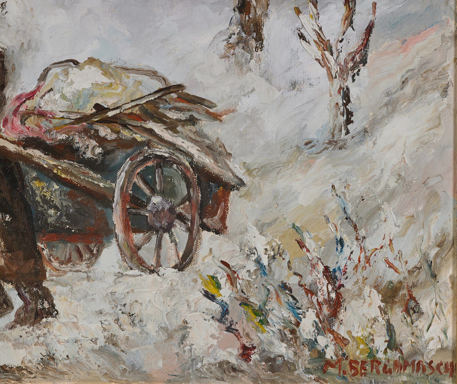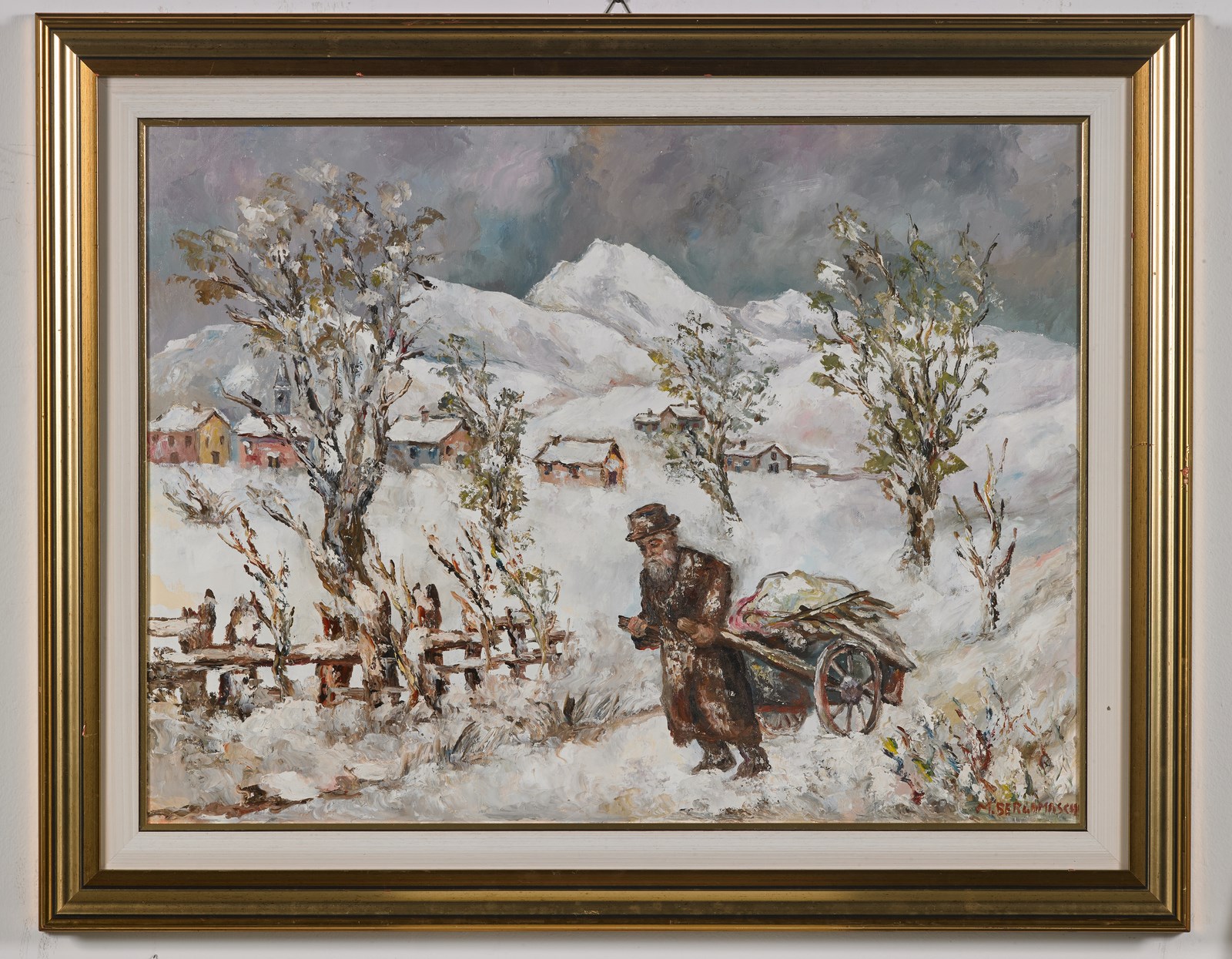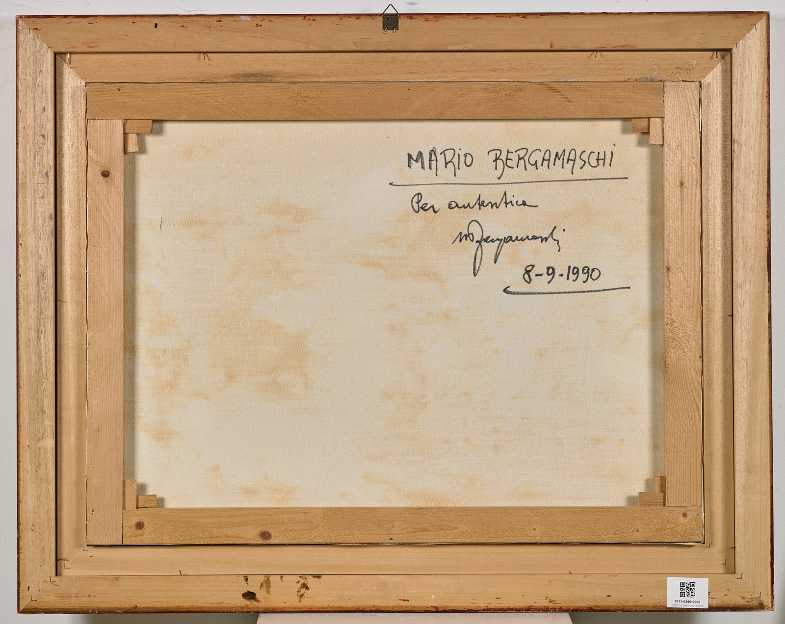 BERGAMASCHI MARIO Senza titolo. 1990. Olio su tela . Cm 80,00 x 60,00. Firma in basso a destra. Al retro firma e anno. Cornice presente