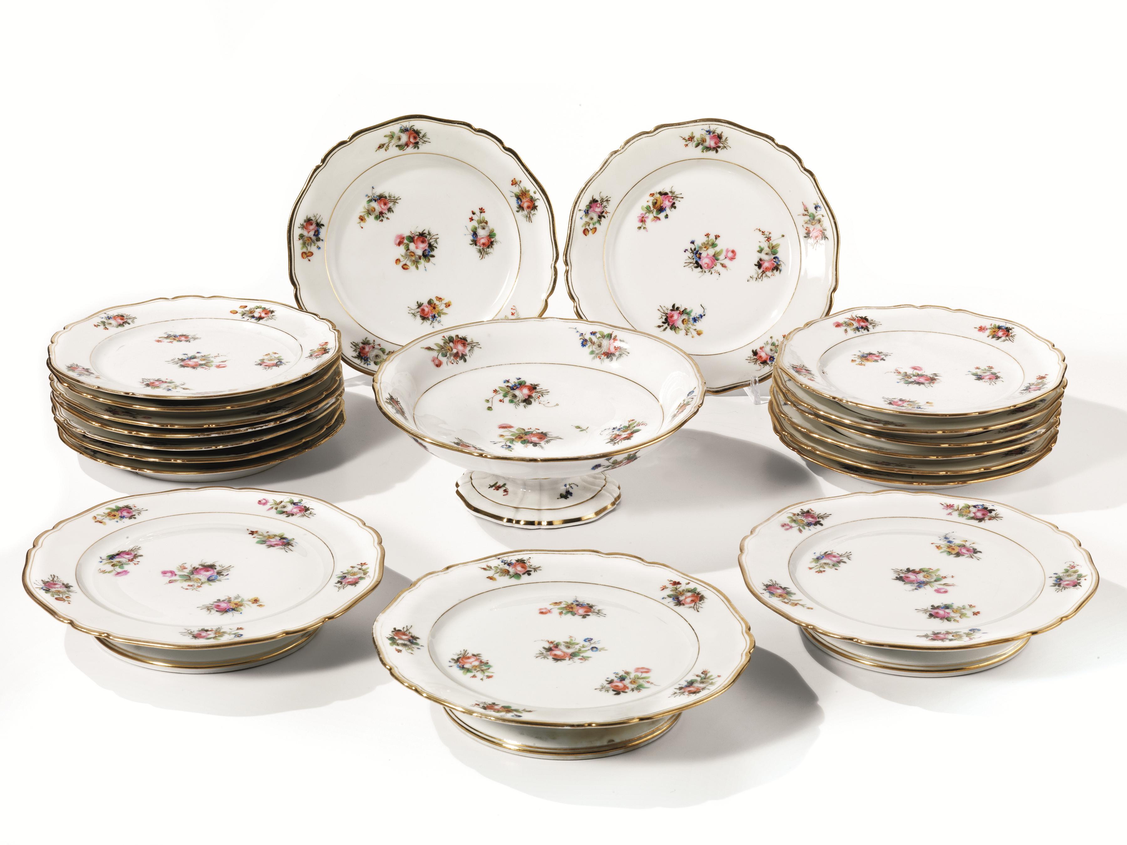 Servito di piatti da dolce,Ginori, fine sec. XIX, in porcellana fondo bianco...