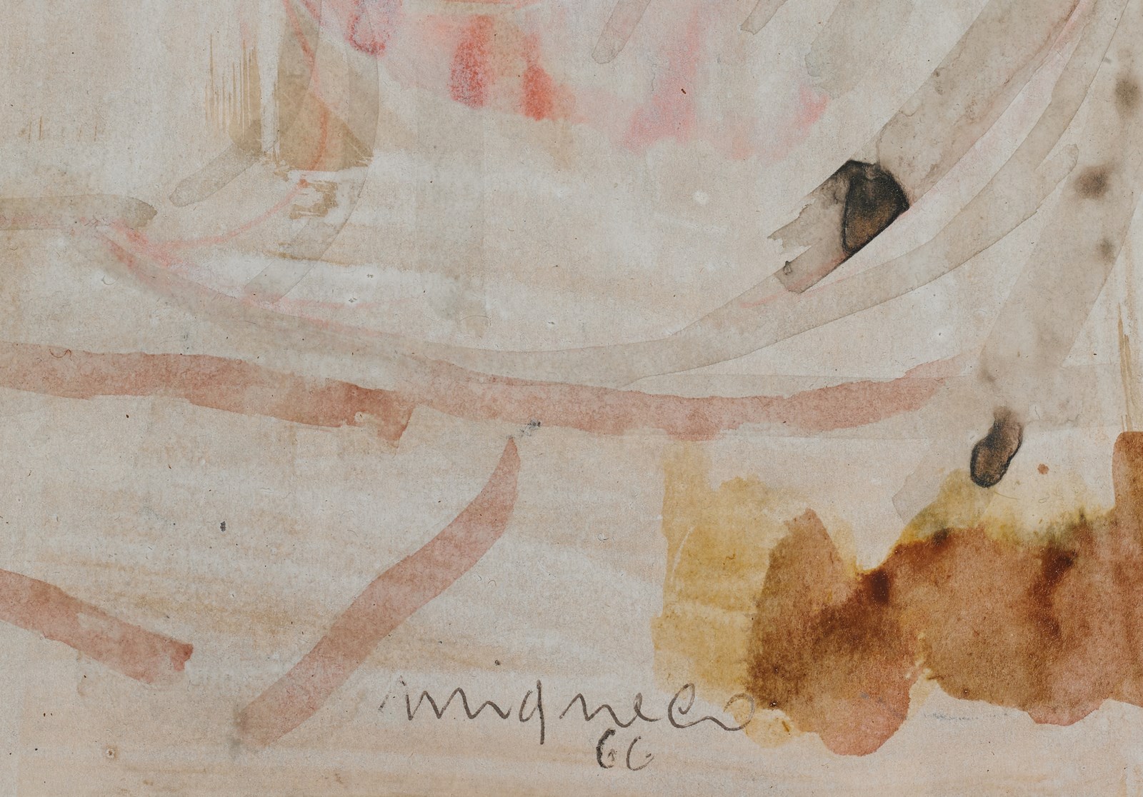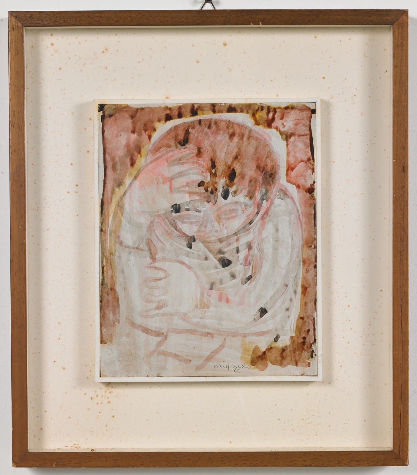 MIGNECO GIUSEPPE (1908 - 1997) Senza titolo. 1966. Tecnica mista su carta su tavola. Cm 22,00 x 27,00. Firma e anno in basso. Opera archiviata presso l'Archivio Giuseppe Migneco - Grazia Migneco, Milano, come da documentazione fotografica allegata all'opera riportante il relativo numero d'inventario. Difetti. Cornice presente